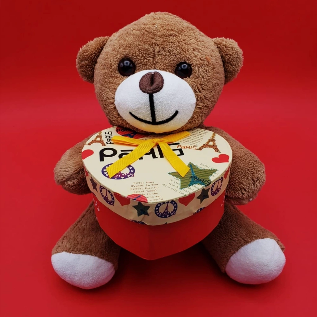 Peluş Ayıcığın Kucağındaki Kalpli Kutu Bu Ürünü Daha Özel Bir Hale Getirir.