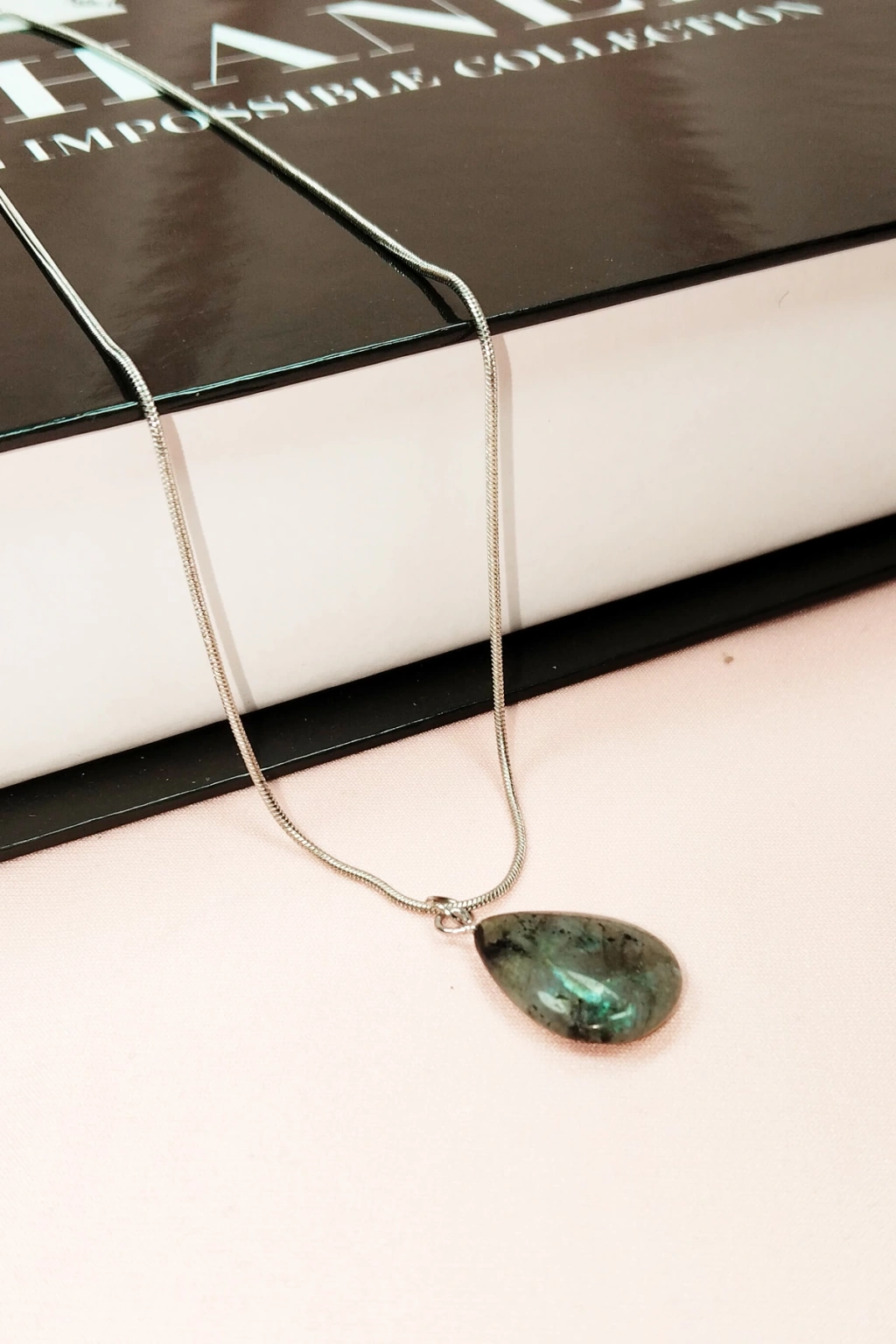 Labradorit Doğal Taşı Zincirli El Yapımı Tasarımlı Kolye Uç: 3,5 cm Zincir: 20 cm Kutulu