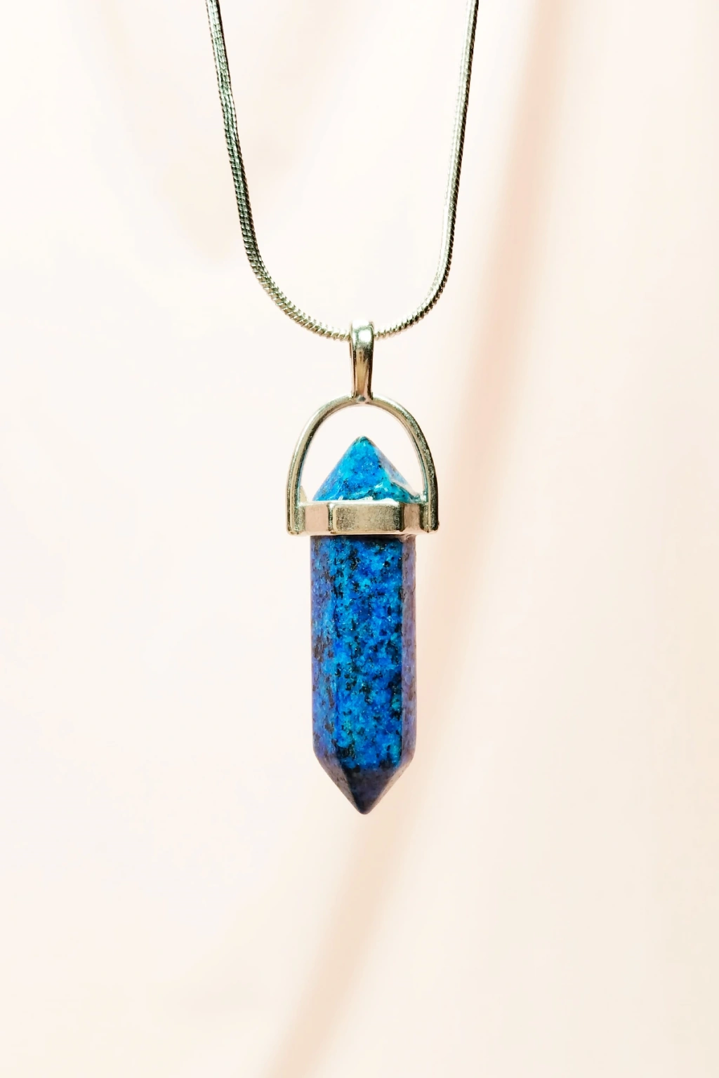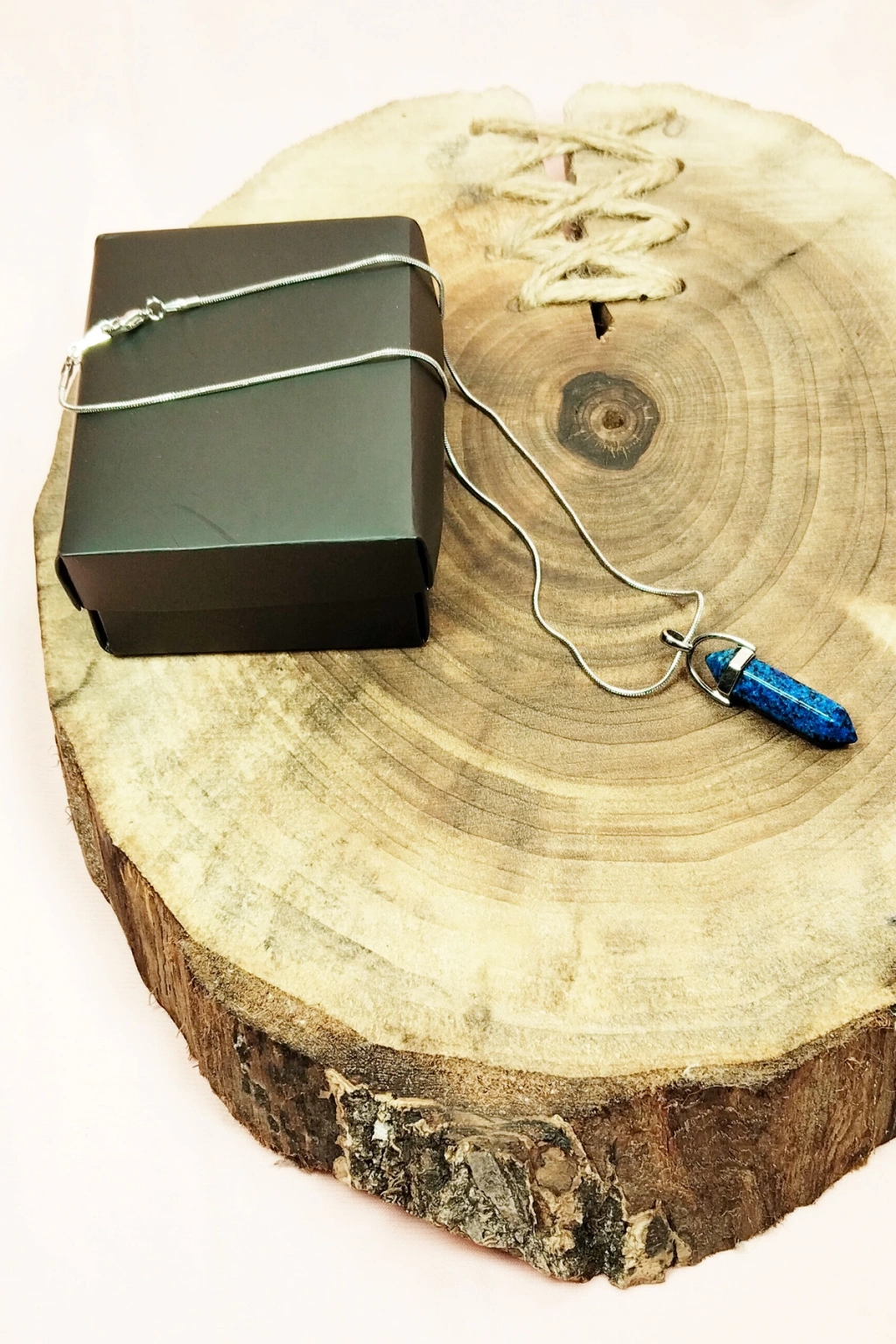 Safir Doğal Taşı Zincirli El Yapımı Tasarımlı Kolye Uç: 3,5 cm Zincir: 20 cm Kutulu