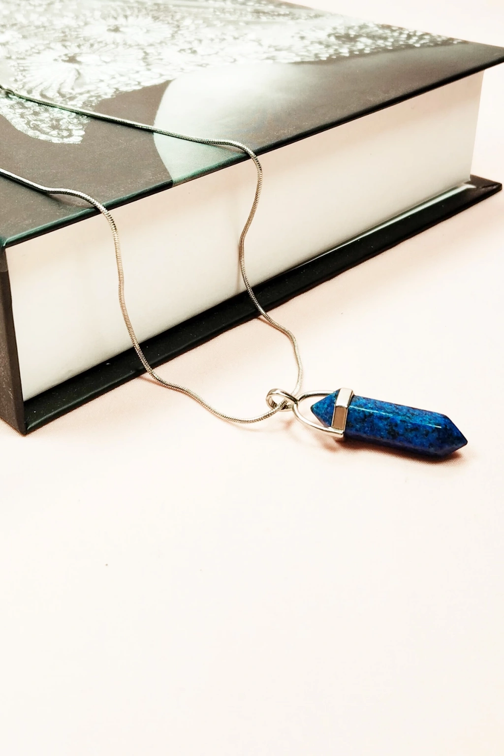 Sodalit Doğal Taşı Zincirli El Yapımı Tasarımlı Kolye Uç: 3,5 cm Zincir: 20 cm Kutulu