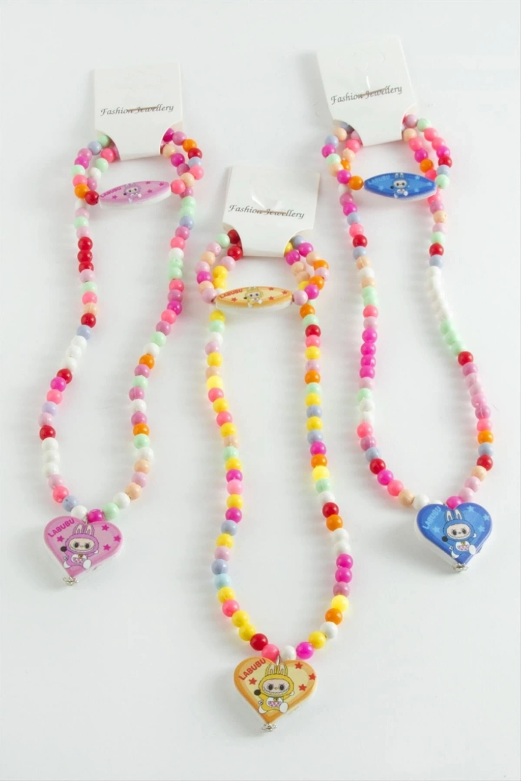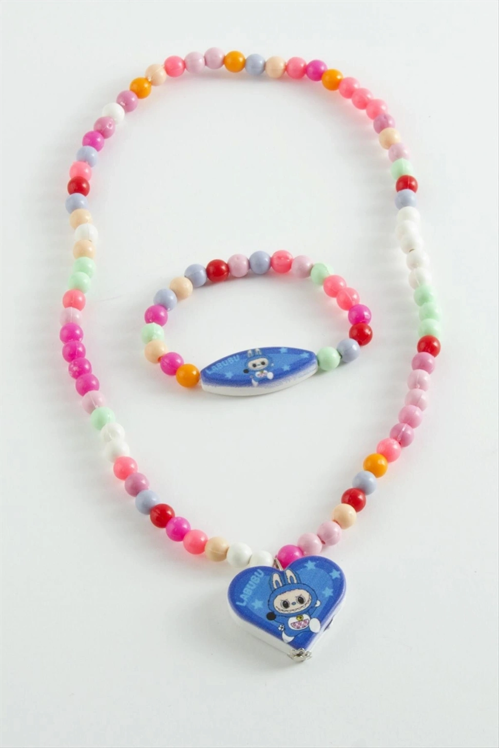 Kolye; Ürün malzemesi boncuktan üretilmiştir. Ürün bileklik ve kolye olarak beraber gönderilecektir. Kolye boyu 42 cm ve bileklik boyu 14 cmdir. Misina üzeri dizilmiş lastiklidir. Ürün figürleri asortilidir. Siparişlerinizde karışık olarak gönderilecektir.