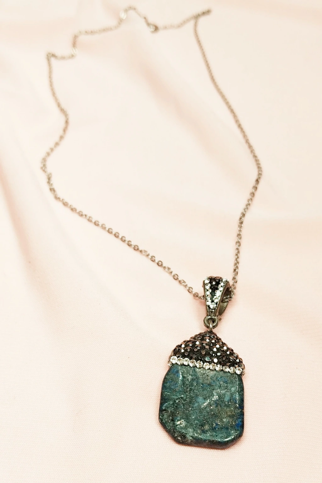 Yeşil Kuvars Doğal Taşı Zincirli El Yapımı Tasarımlı Kolye Uç: 3,5 cm Zincir: 20 cm Kutulu