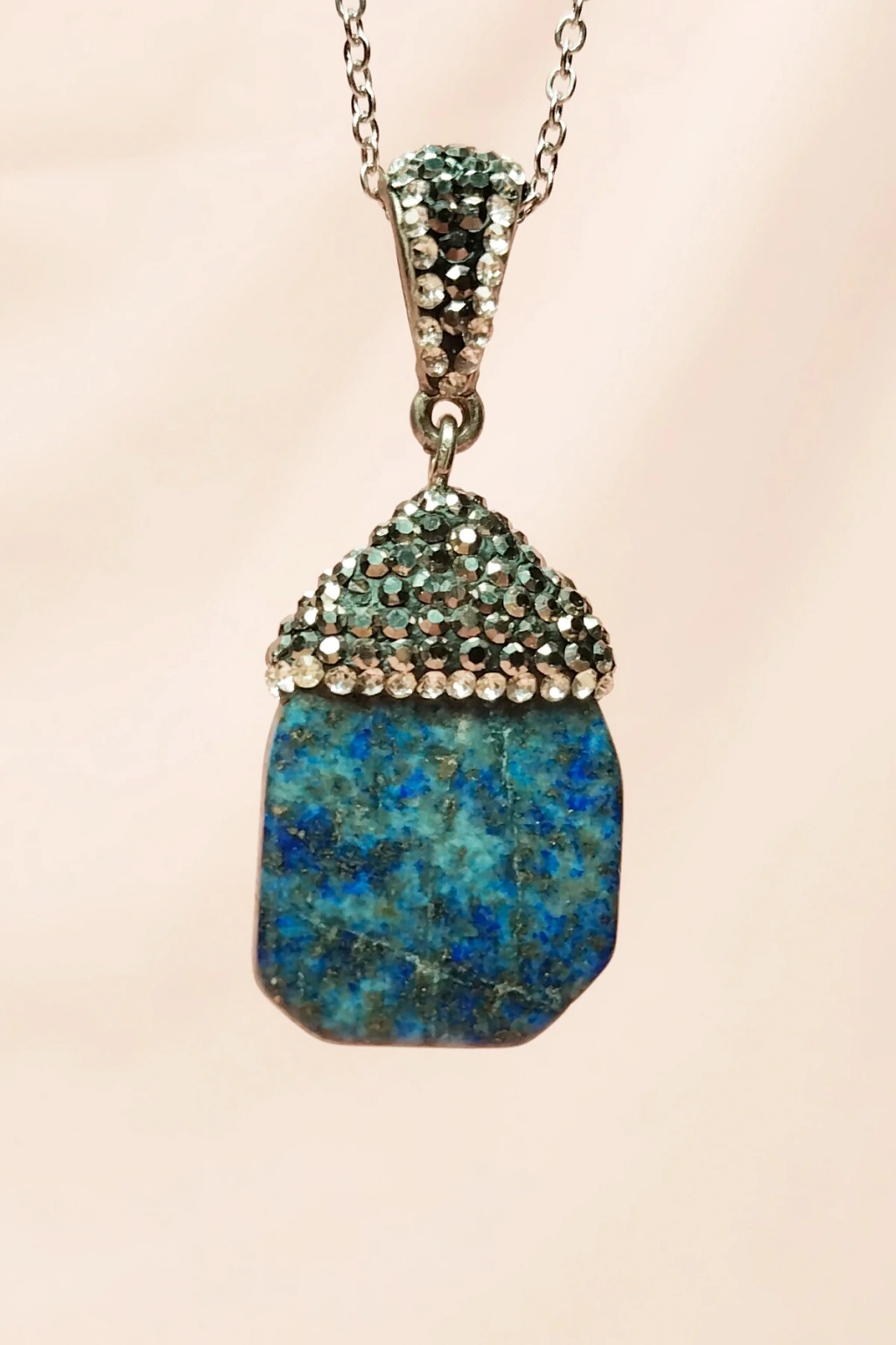 Lapis Doğal Taşı Zincirli El Yapımı Kolye Uç: 3 cm Zincir: 20 cm Kutulu