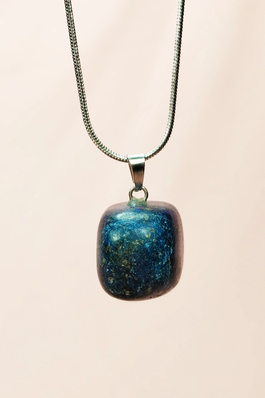 Lapis Lazuri Doğal Taşı Zincirli El Yapımı Kolye Uç: 2 cm Zincir: 20 cm Kutulu