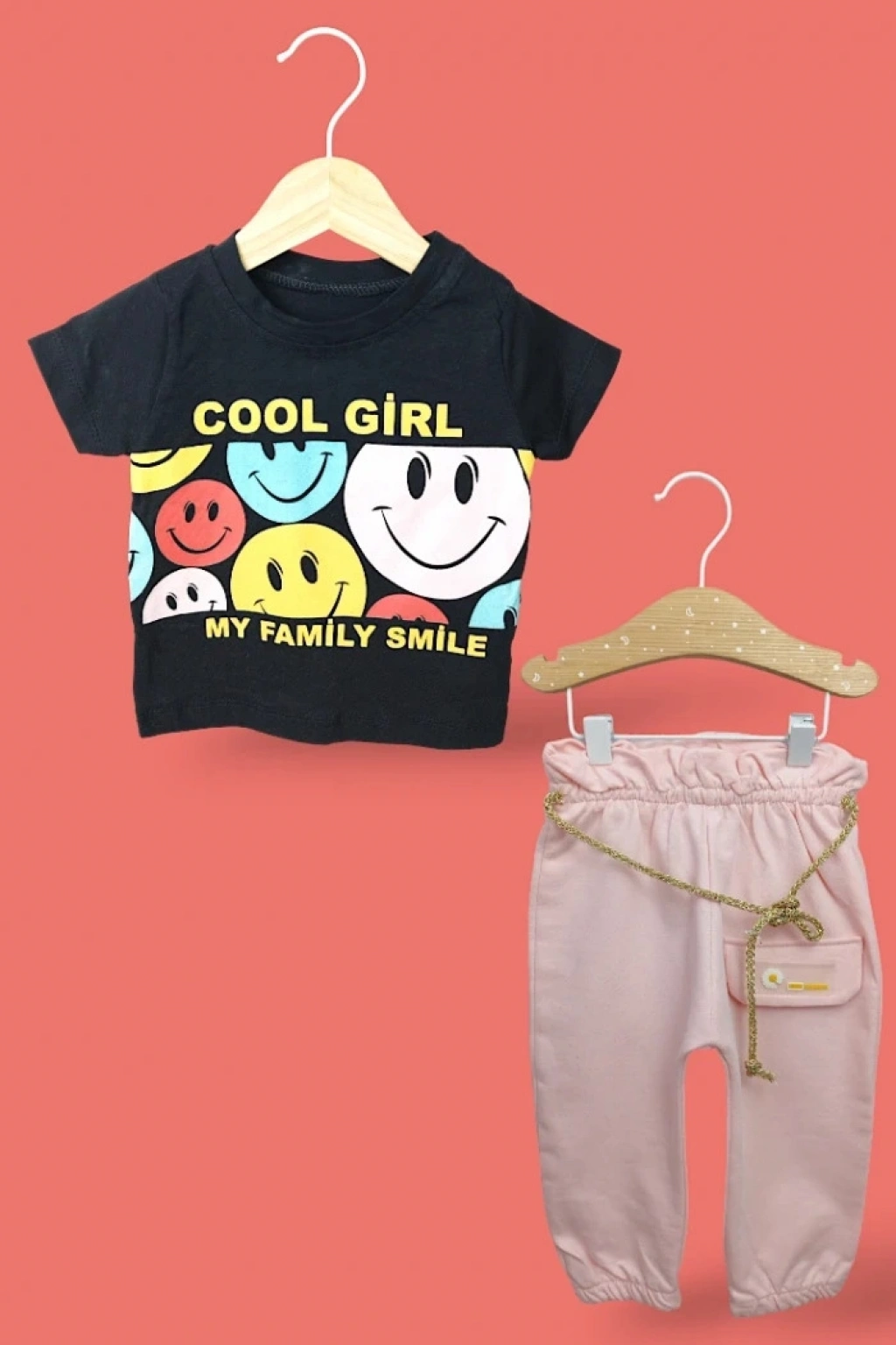 Yazlık Pamuklu Kısa Kollu Kiz Bebek 2li Takım