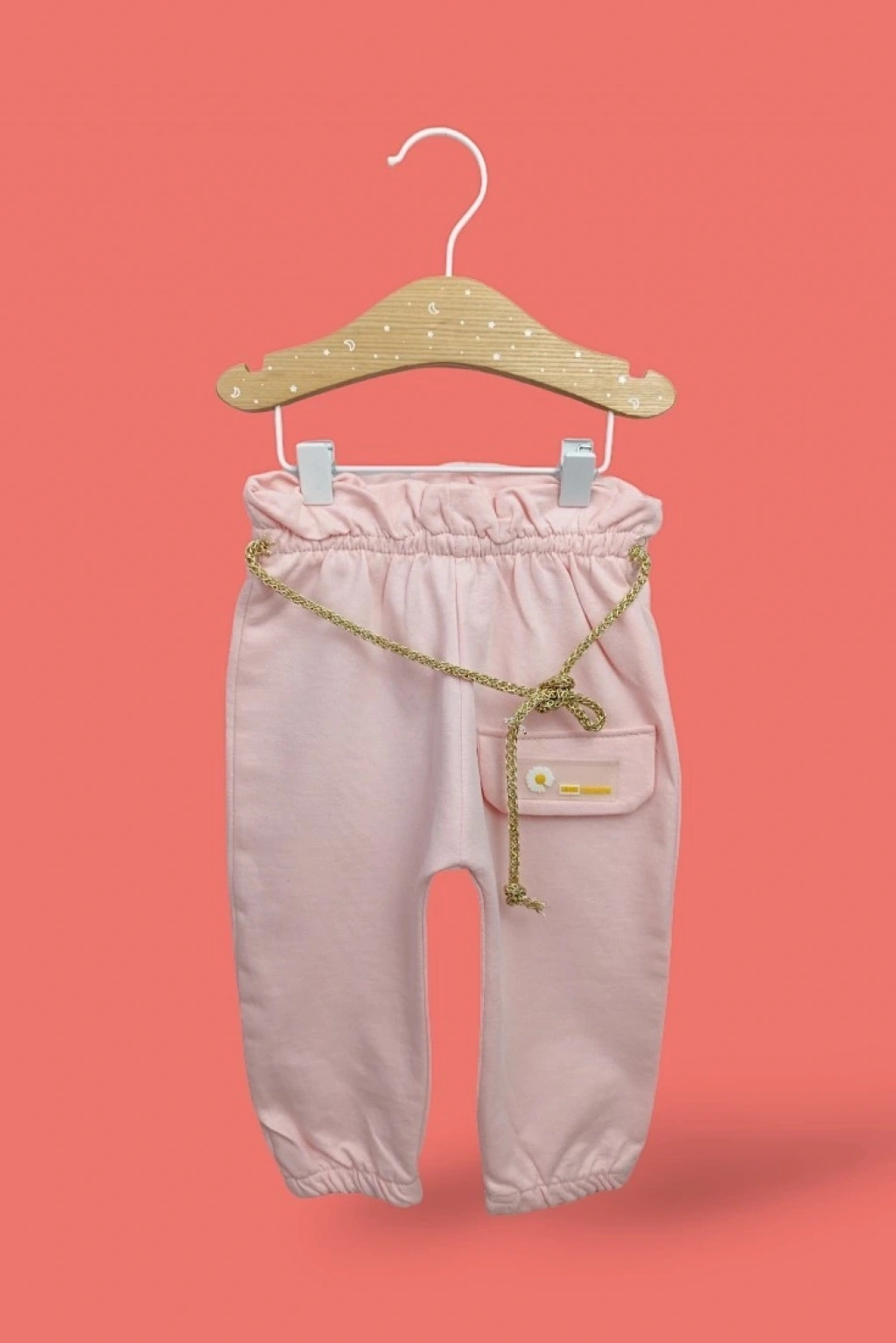 ŞEKER PEMBE KAPİŞONLU UZUN KOLLU LASTİKLİ BEL PAÇA KIZ ÇOCUK & BEBEK ALT ÜST TAKIM