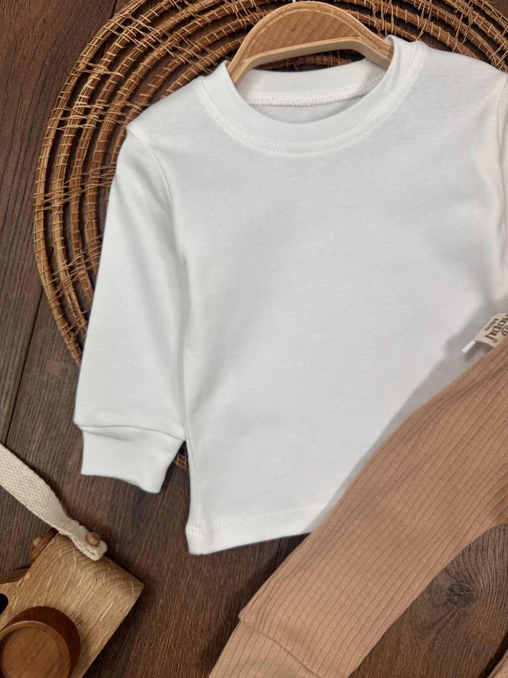 ACIK KAHVE KISA KOLLU KIZ PAMUKLU ÇOCUK & 2 PARÇA BEBEK TULUM