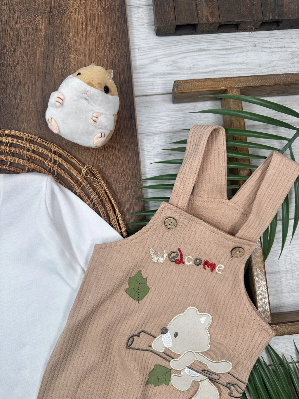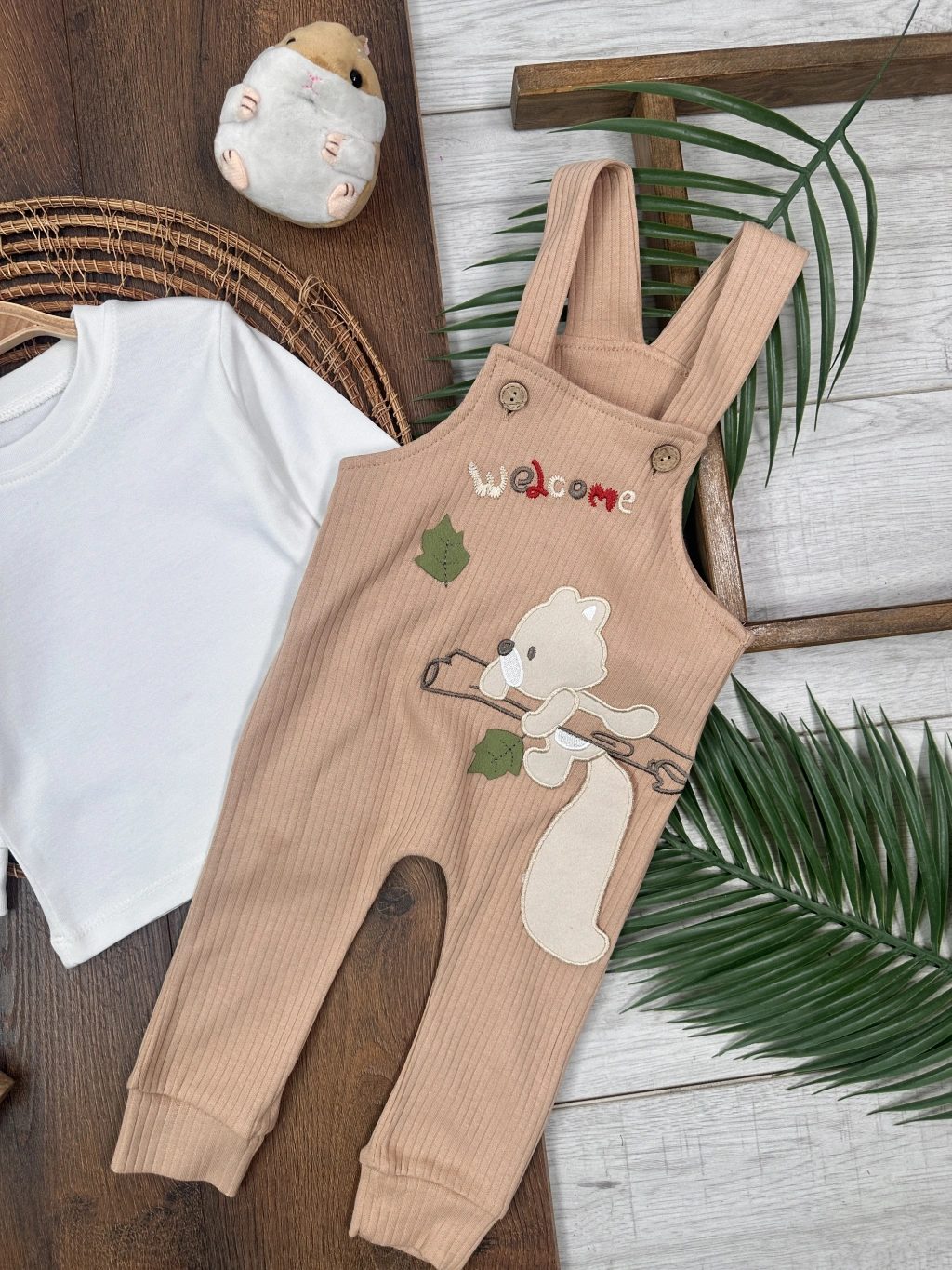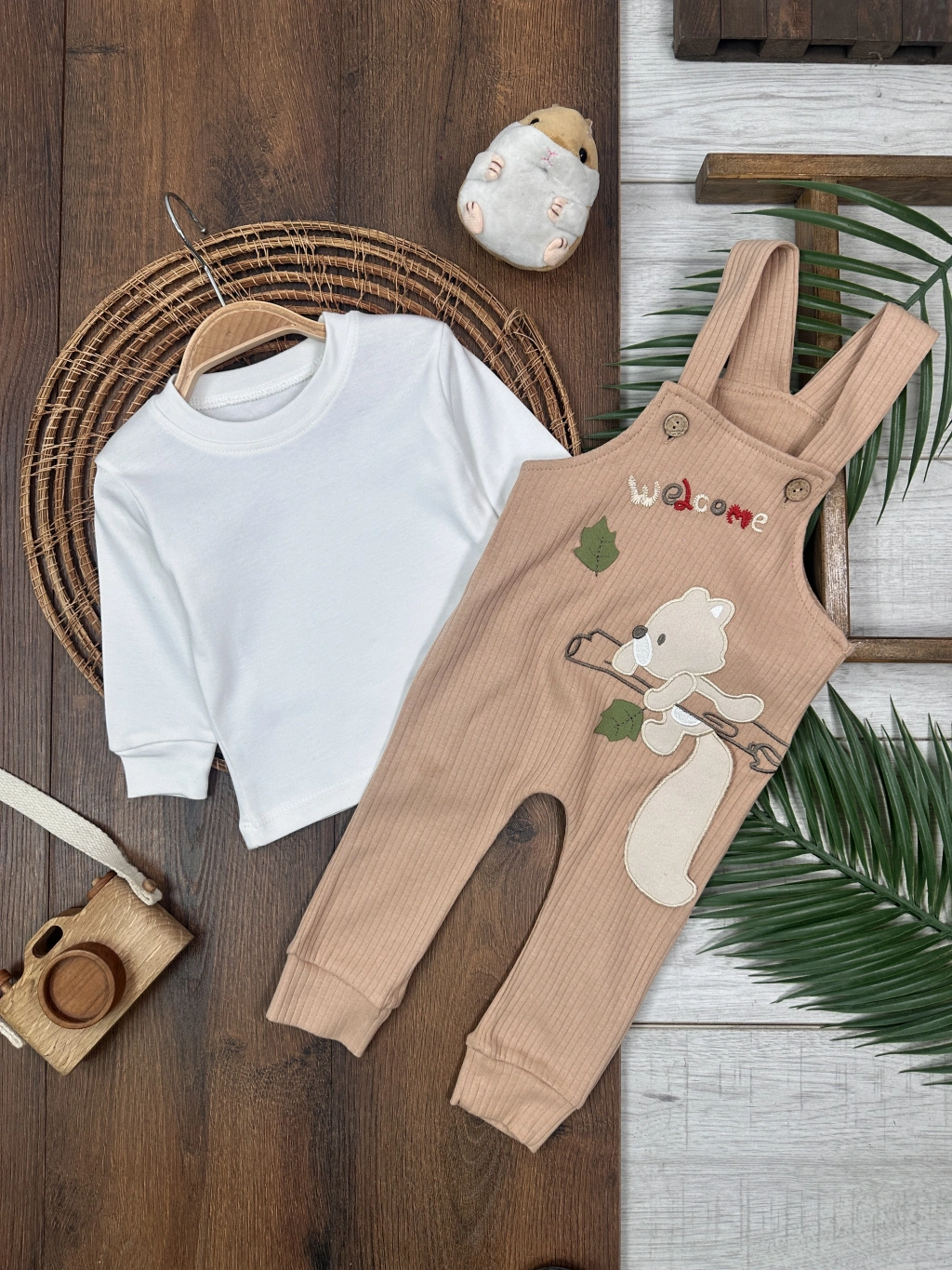 KAHVERENGI KISA KOLLU KIZ PAMUKLU ÇOCUK & 2 PARÇA BEBEK TULUM