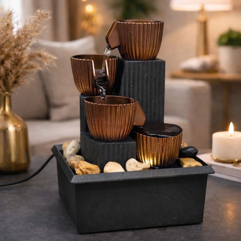 LED Işıklı Dekoratif Masaüstü Su Şelalesi