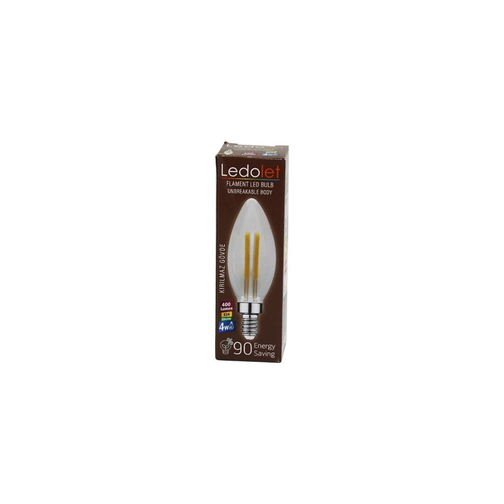 LEDOLET 4W=45W - E14 MUM FLAMENT LED RUSTİK AMPUL 400LUMEN - 3000K KIRILMAZ GÖVDE (4887)