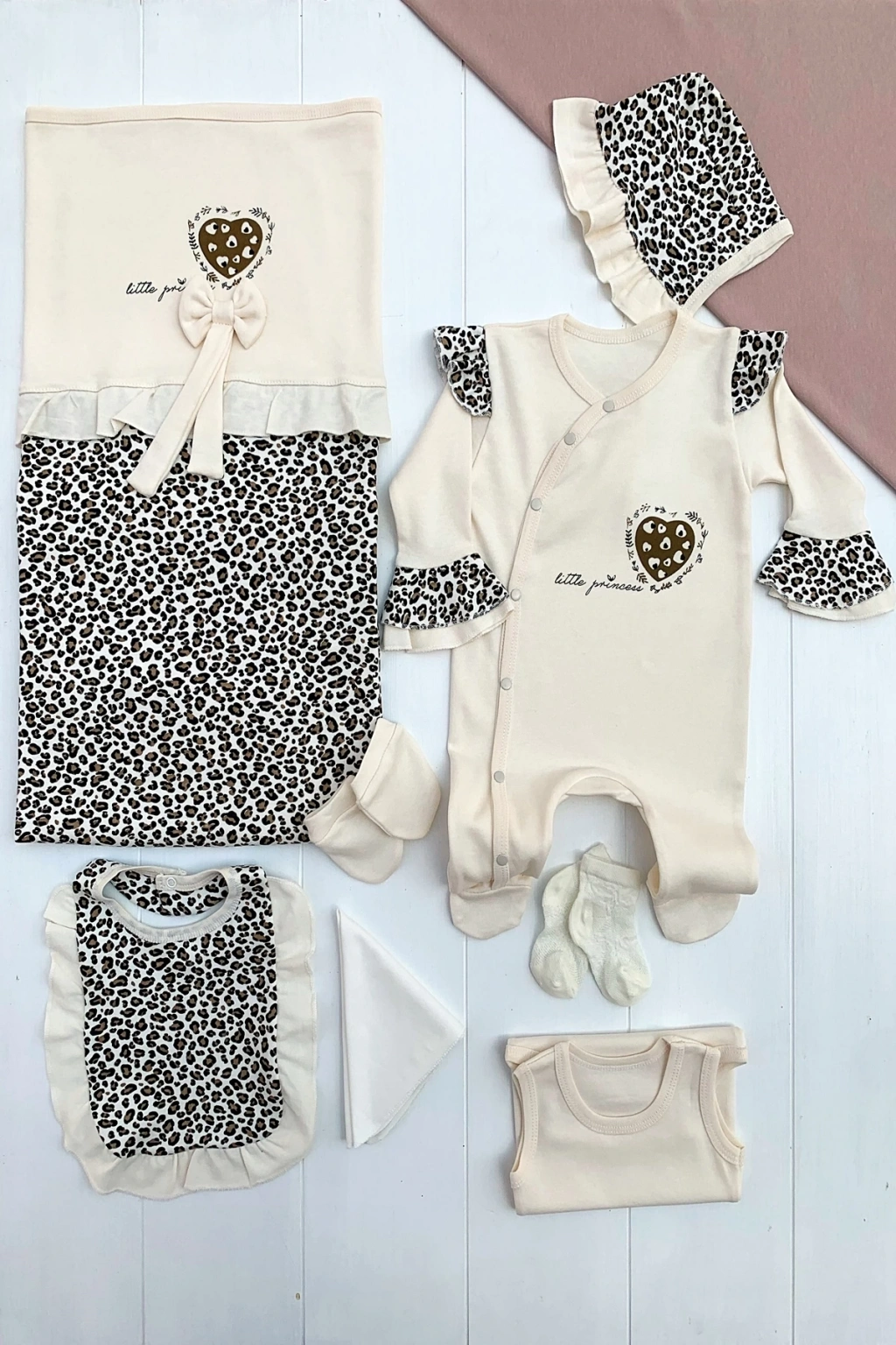 Leopar Desenli 100% Pamuk 8li Hastane çıkış seti