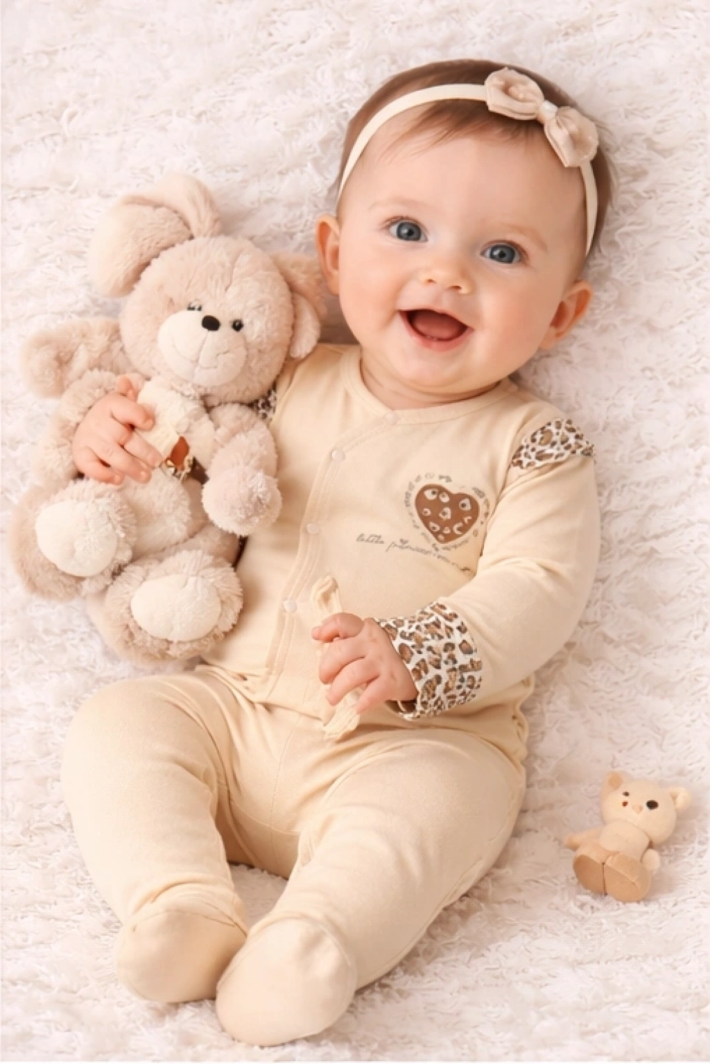 - Leopar desenli detaylar, bebeğinizin tarzını yansıtacak.
