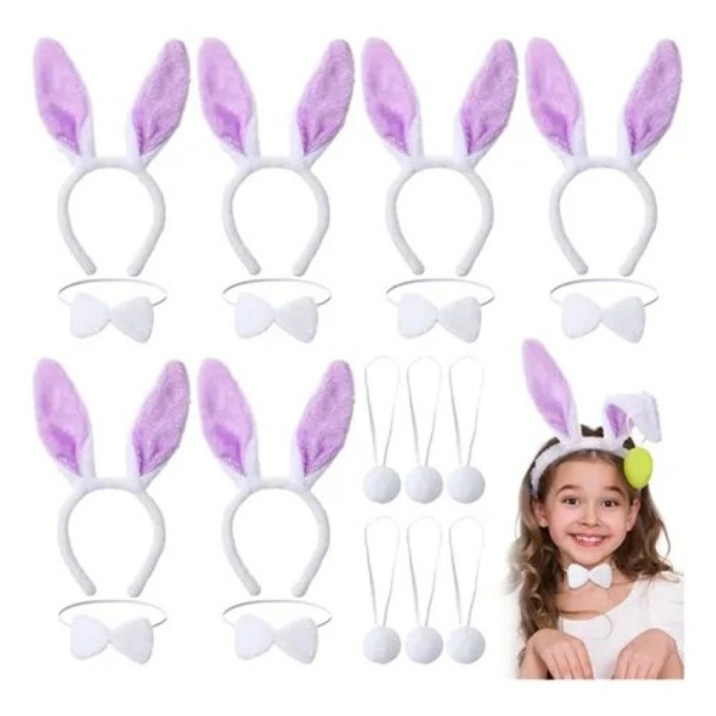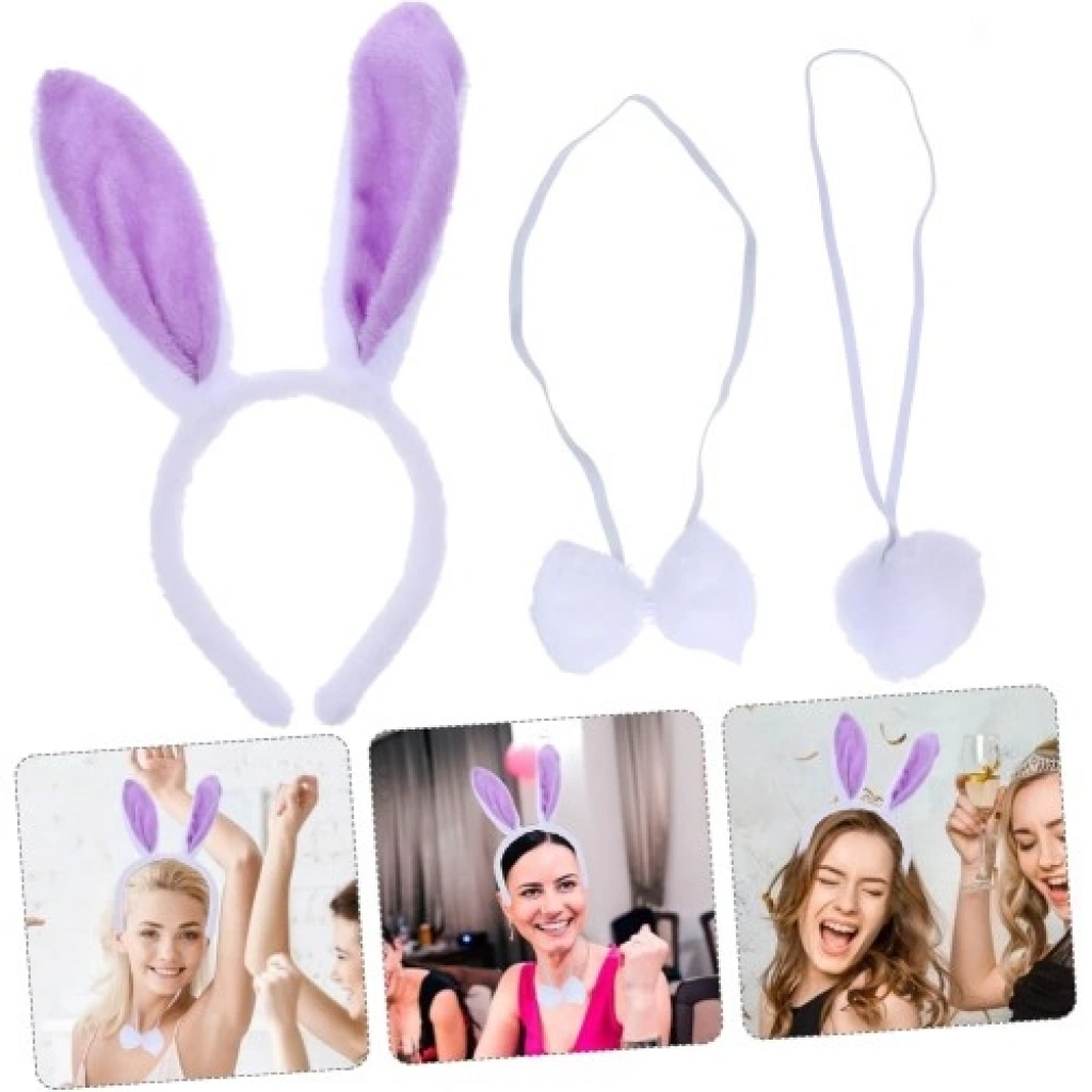 Lila Mor Tavşan Kulak Papyon Kuyruk 3'lü Parti Seti