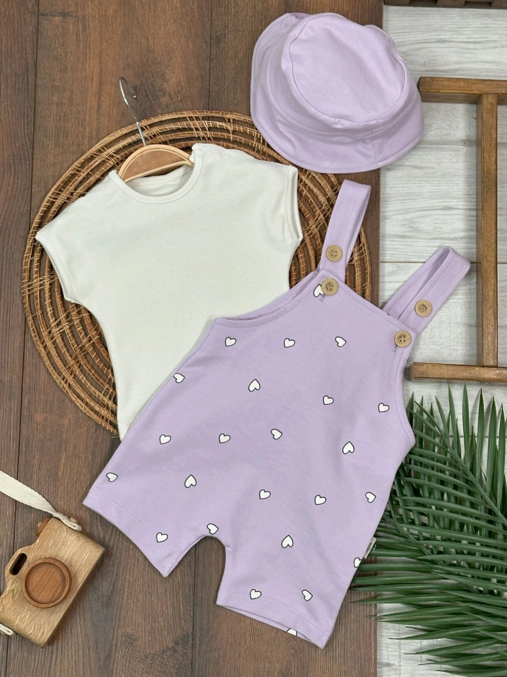 Lila Şapkalı Zarif Slopet 3lü Kız Bebek Takım