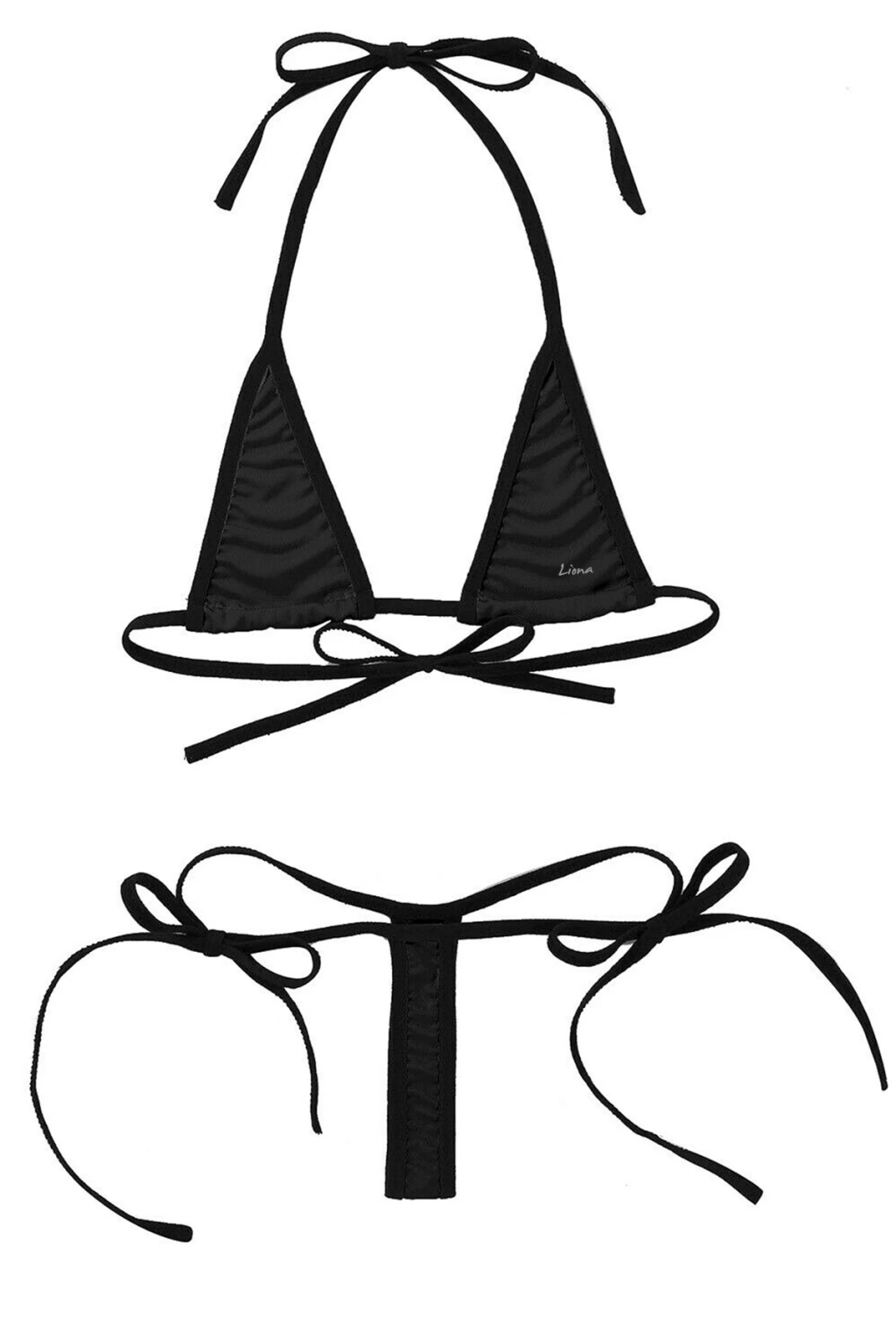 MARSİLYAN-- Siyah Mikro Bikini Sütyen Külot Fantezi İç Çamaşırı Takımı