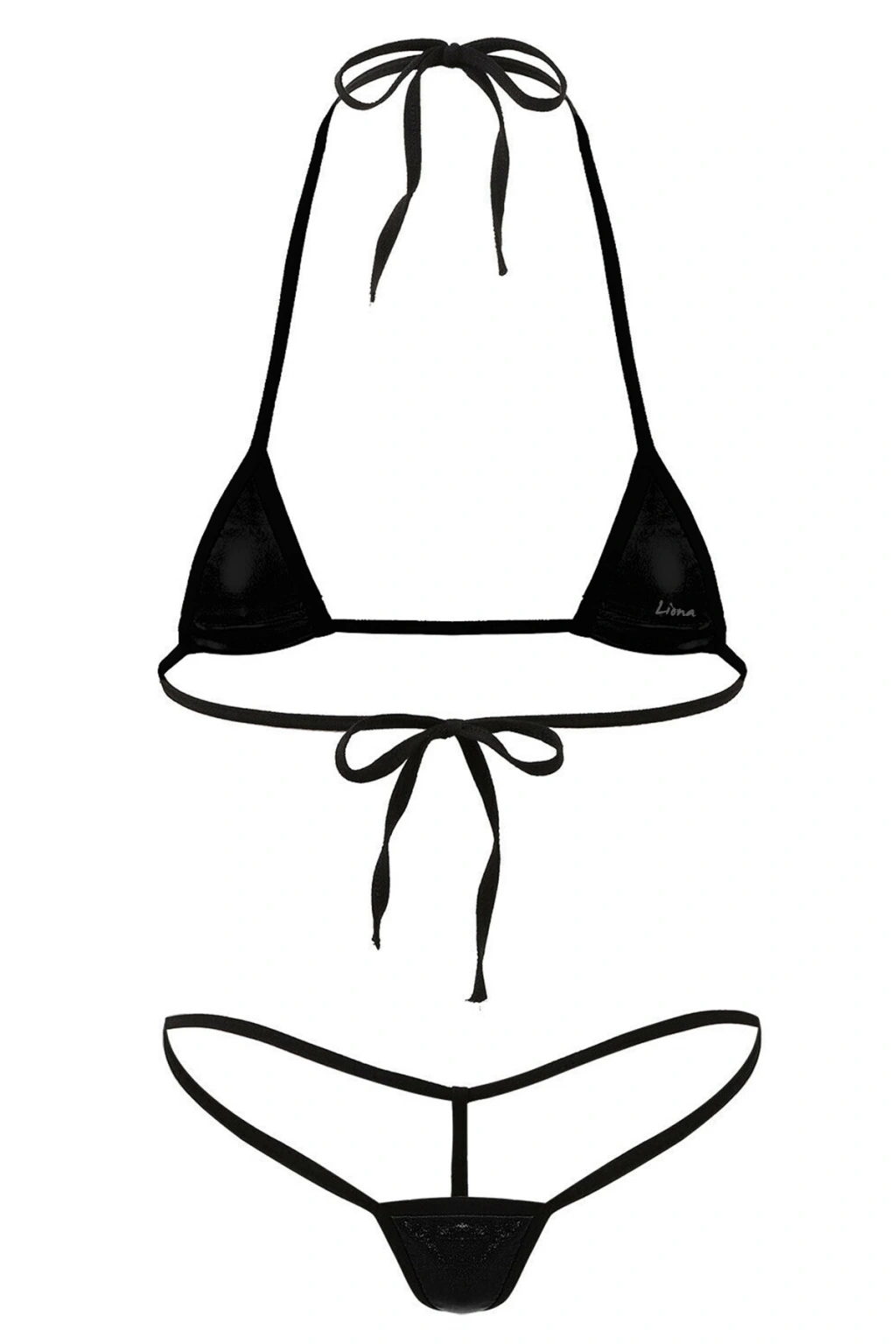 MARSİLYAN-- Siyah Mikro Bikini Sütyen Külot Fantezi İç Çamaşırı Takımı