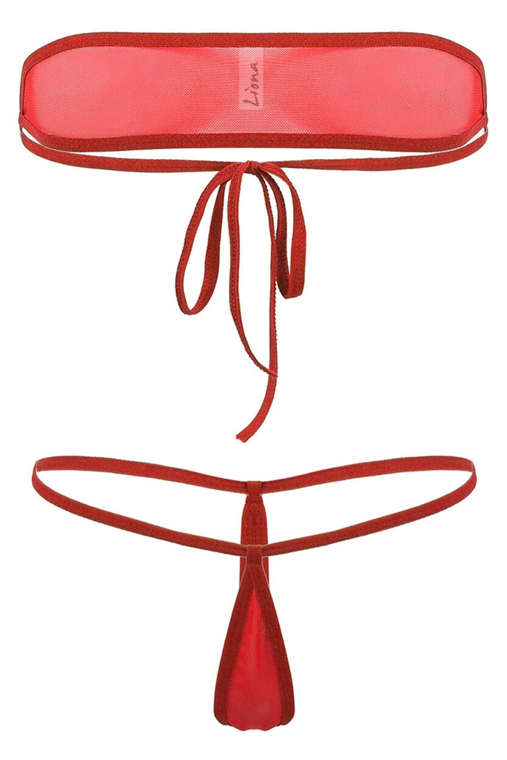 MARSİLYAN-- Kırmızı Mikro Bikini Fantezi İç Çamaşırı Takımı