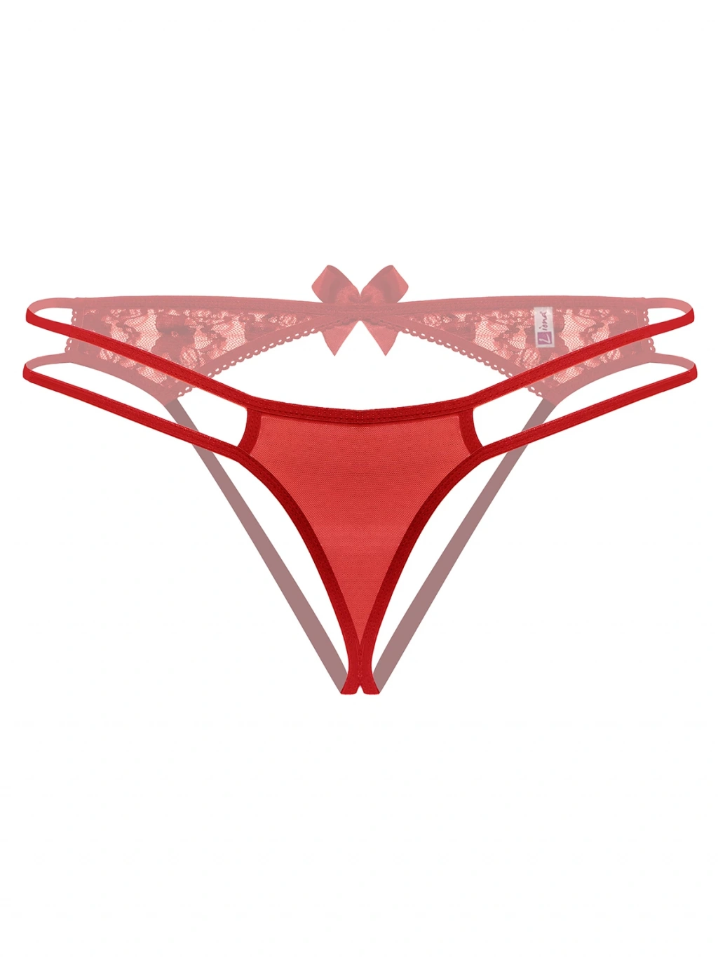 Kırmızı Dantelli Arkası Açık Fantezi Külot Tanga