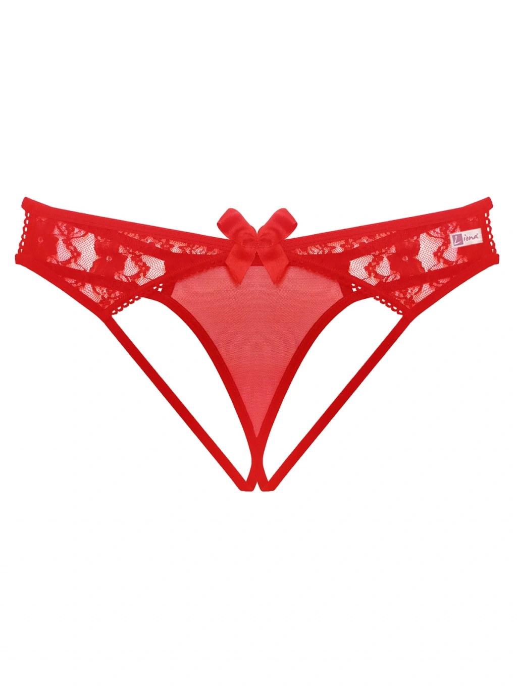 Kırmızı Dantelli Önü Açık Fantezi Külot