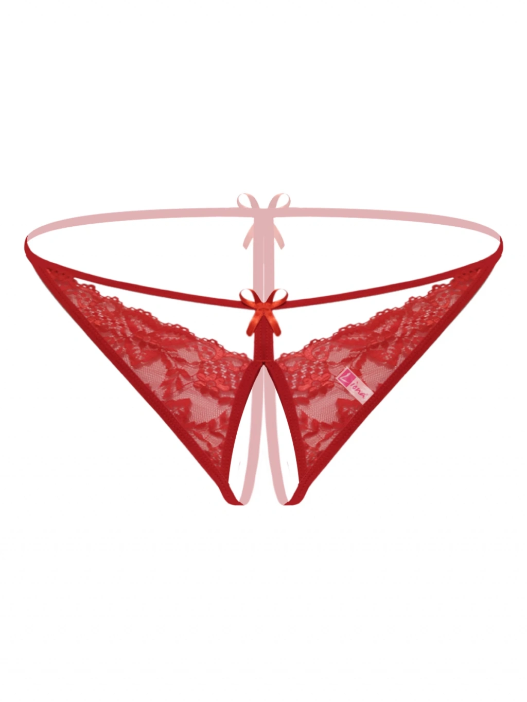 Özel Bölgesi Açık Kadın Kırmızı Dantelli Fantezi Külot