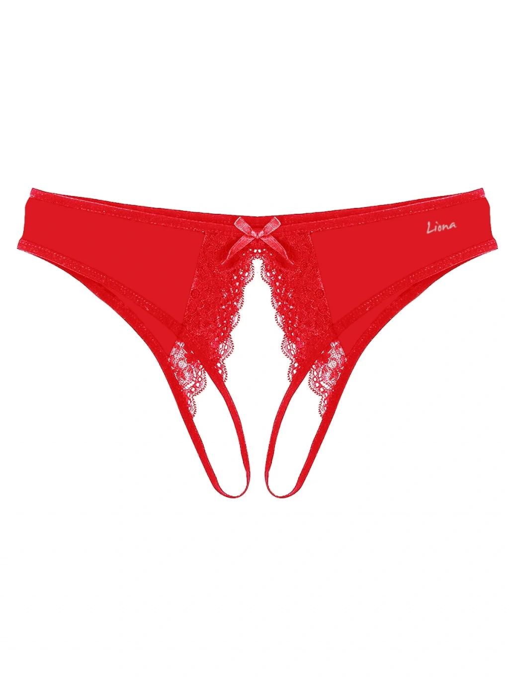 Özel Bölgesi Açık Kadın Kırmızı Dantelli Fantezi Külot