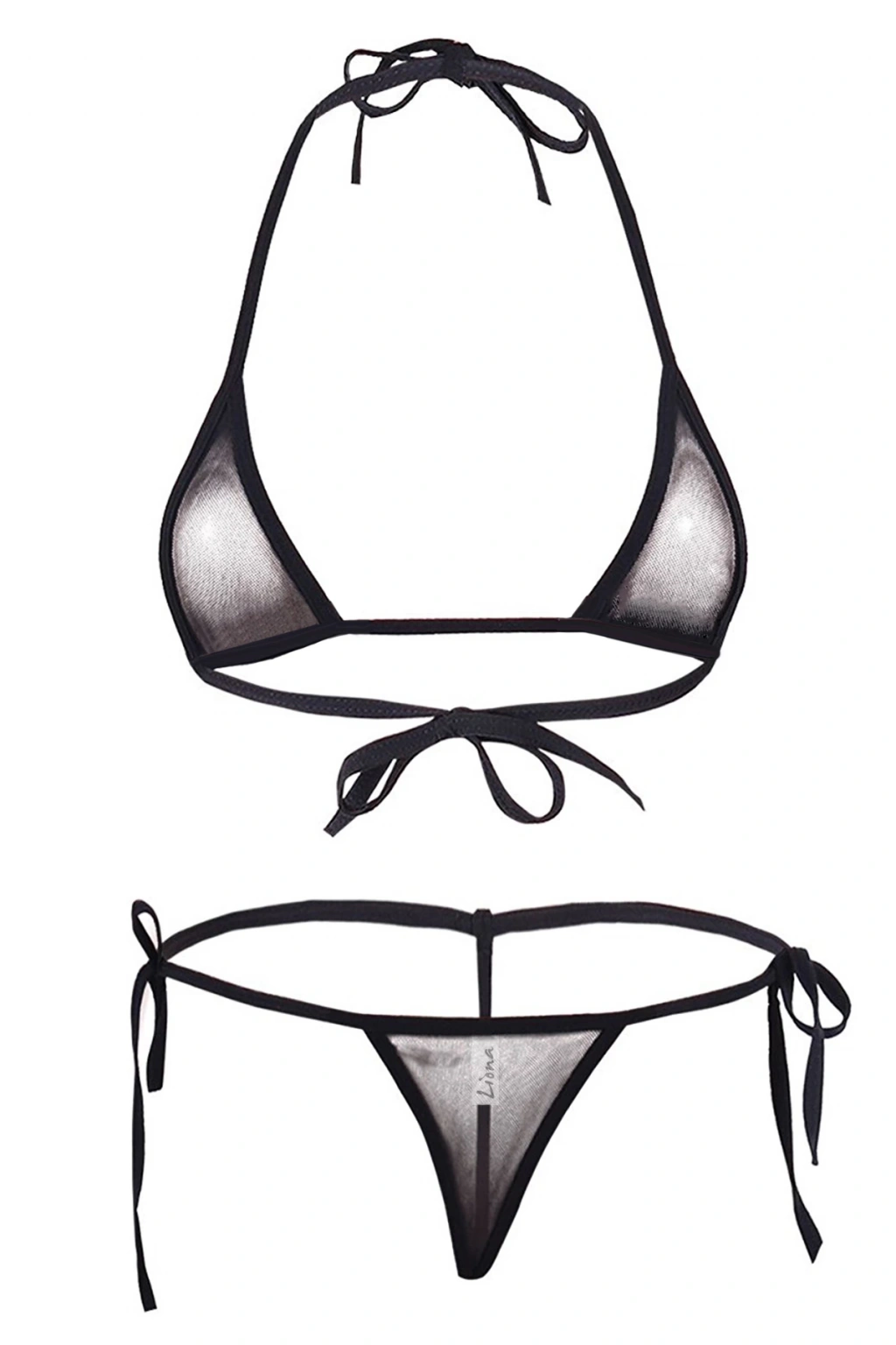 MARSİLYAN-- Siyah Mikro Bikini Sütyen Külot Fantezi İç Çamaşırı Takımı