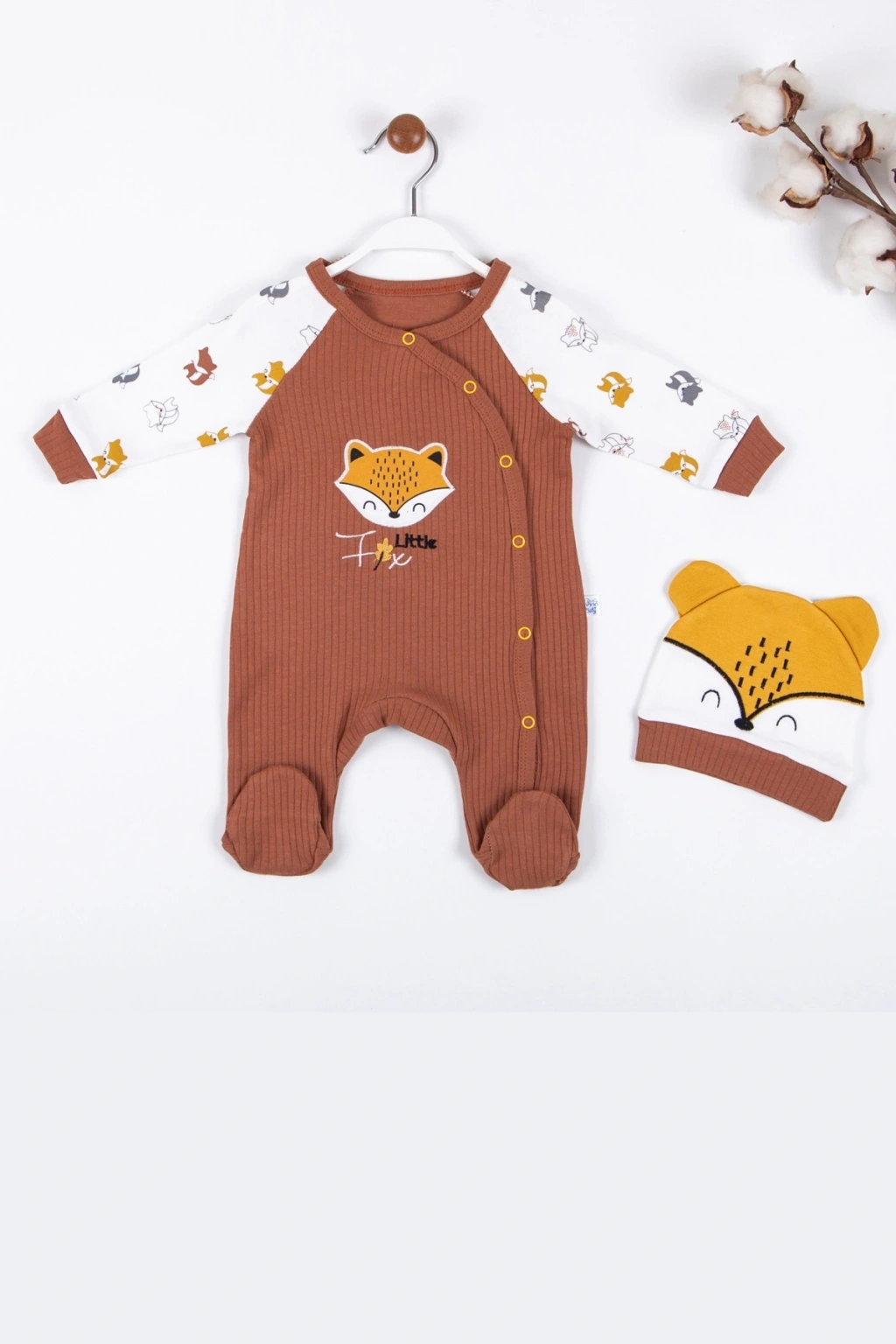 Little Fox Desenli % 100 Pamuk Erkek Bebek Tulumu.