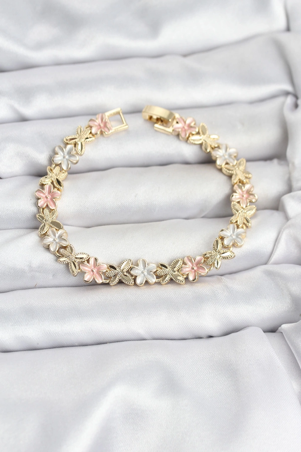 Lotus Model Pirinç Gold ve Pembe Renk Kadın Bileklik - TJ-BB8146