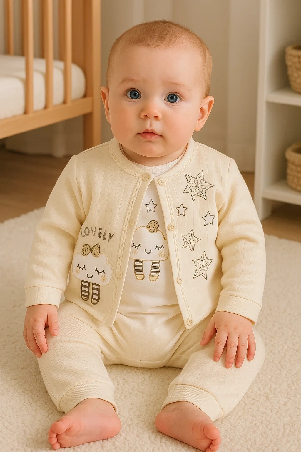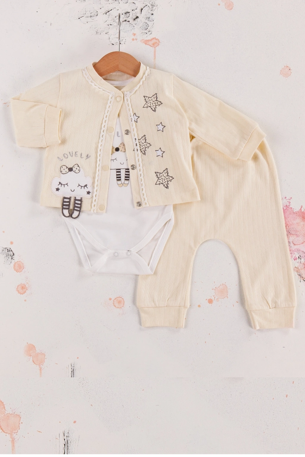 Lovely Yıldız Desenli 3'lü Hırkalı Kız Bebek Takım