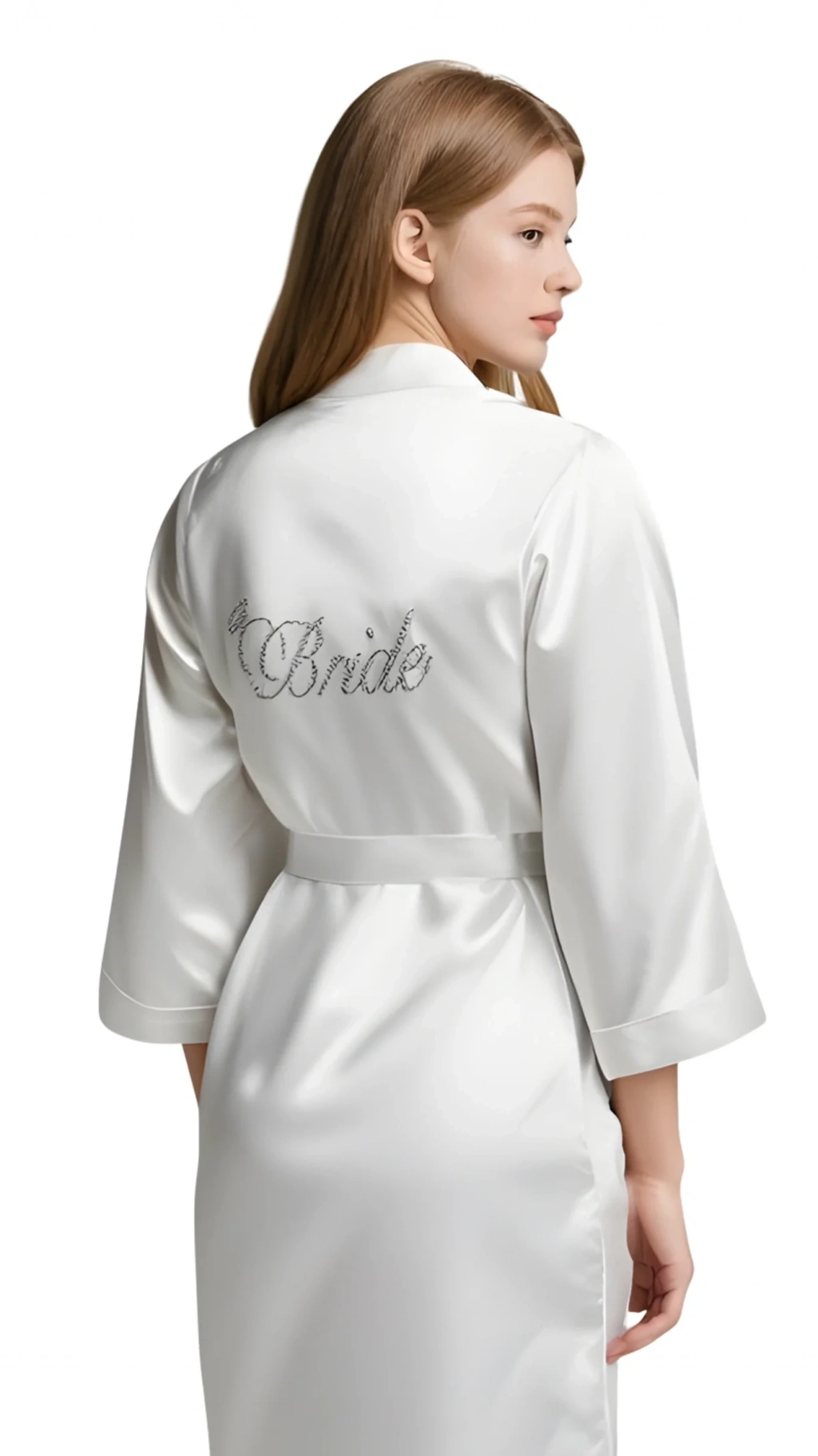 Luna Lora Beyaz Saten Bride Sabahlık Zarif Kadın Ev Giyim