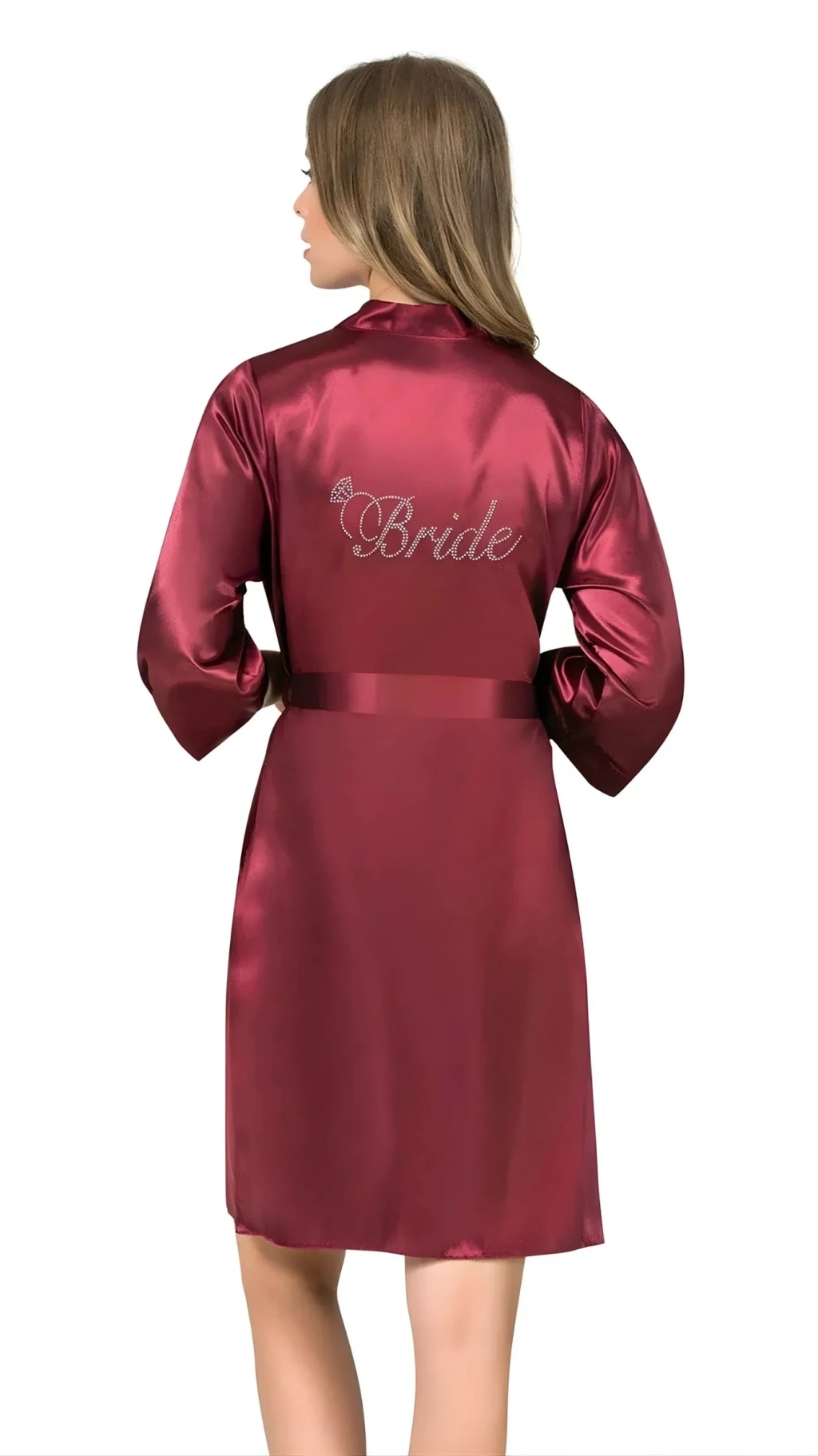 Luna Lora Bordo Saten Bride Sabahlık Zarif Kadın Ev Giyim