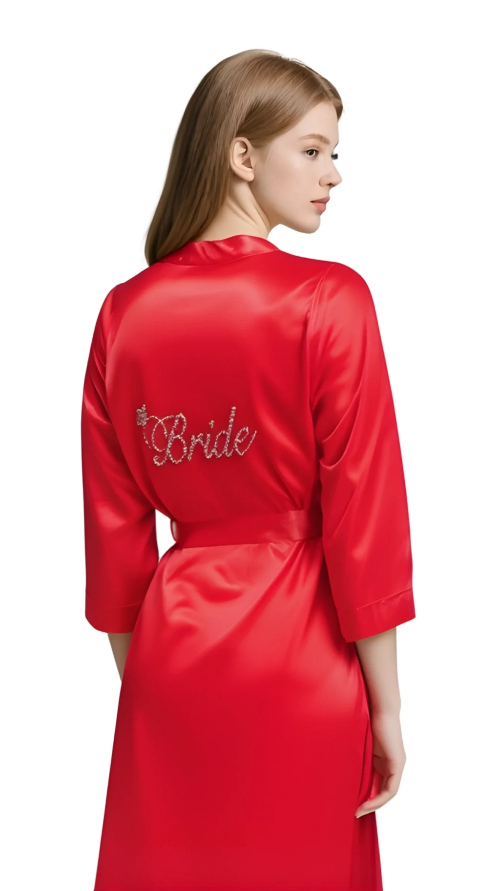 Luna Lora Kırmızı Saten Bride Sabahlık Zarif Kadın Ev Giyim