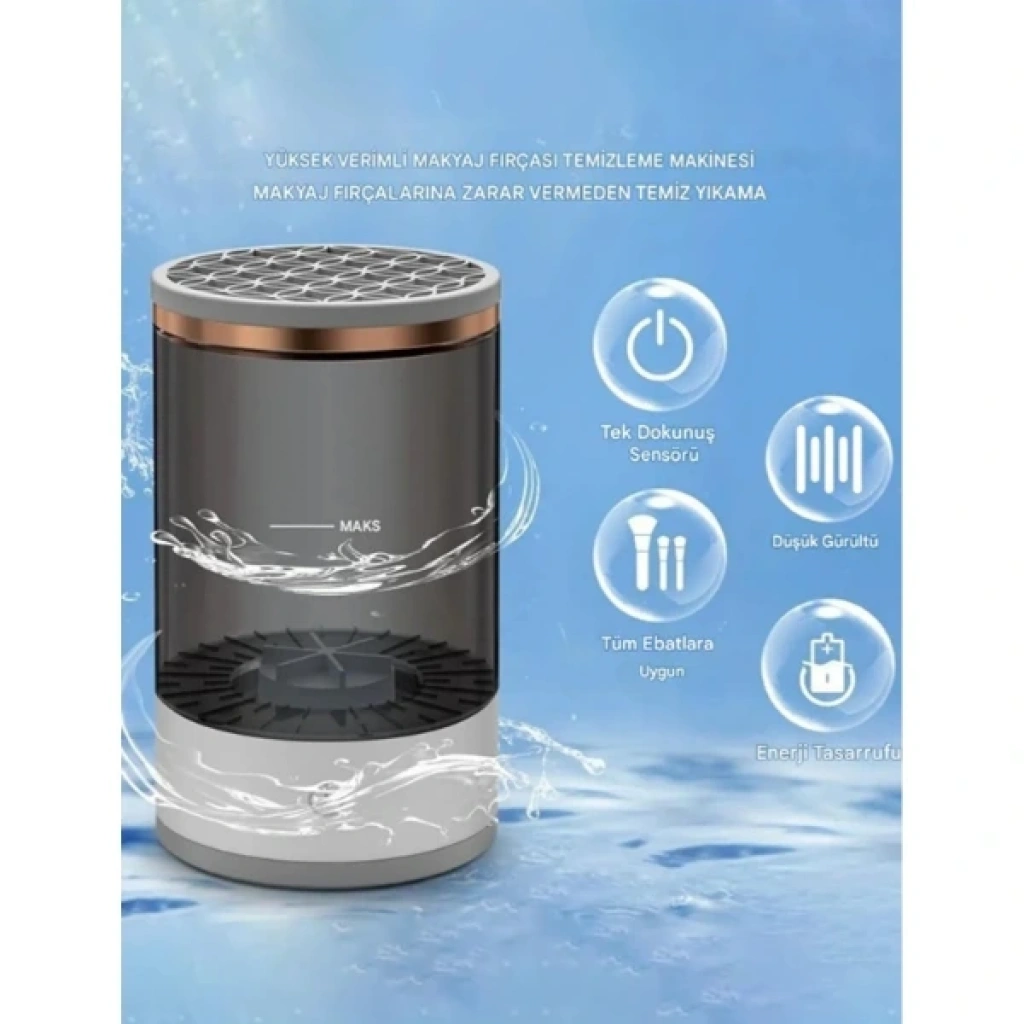 MAKYAJ FIRÇASI TEMİZLEME MAKİNESİÜrün ÖzellikleriMakyaj fırçası temizleme makinesi, fırçalarınızı zahmetsizce temizlemenizi sağlayan pratik ve yenilikçi bir çözümdür. Tüm fırça boyutlarına uyumlu olarak tasarlanmıştır ve makyaj fırçalarına zarar vermeden derinlemesine temizlik sunar. Su haznesi üzerinde maksimum seviye göstergesi bulunur ve içerisine fırçalar kolayca yerleştirilir. Tek dokunuş sensörü sayesinde cihaz hızlıca çalışmaya başlar ve düşük gürültülü motoru ile konforlu bir kullanım sağlar. Enerji tasarruflu yapısı sayesinde çevre dostu bir üründür. Günlük makyaj rutininin hijyenik bir şekilde devam etmesi için ideal bir üründür.Paket İçeriği1 Adet Makyaj Fırçası Temizleme Makinesi