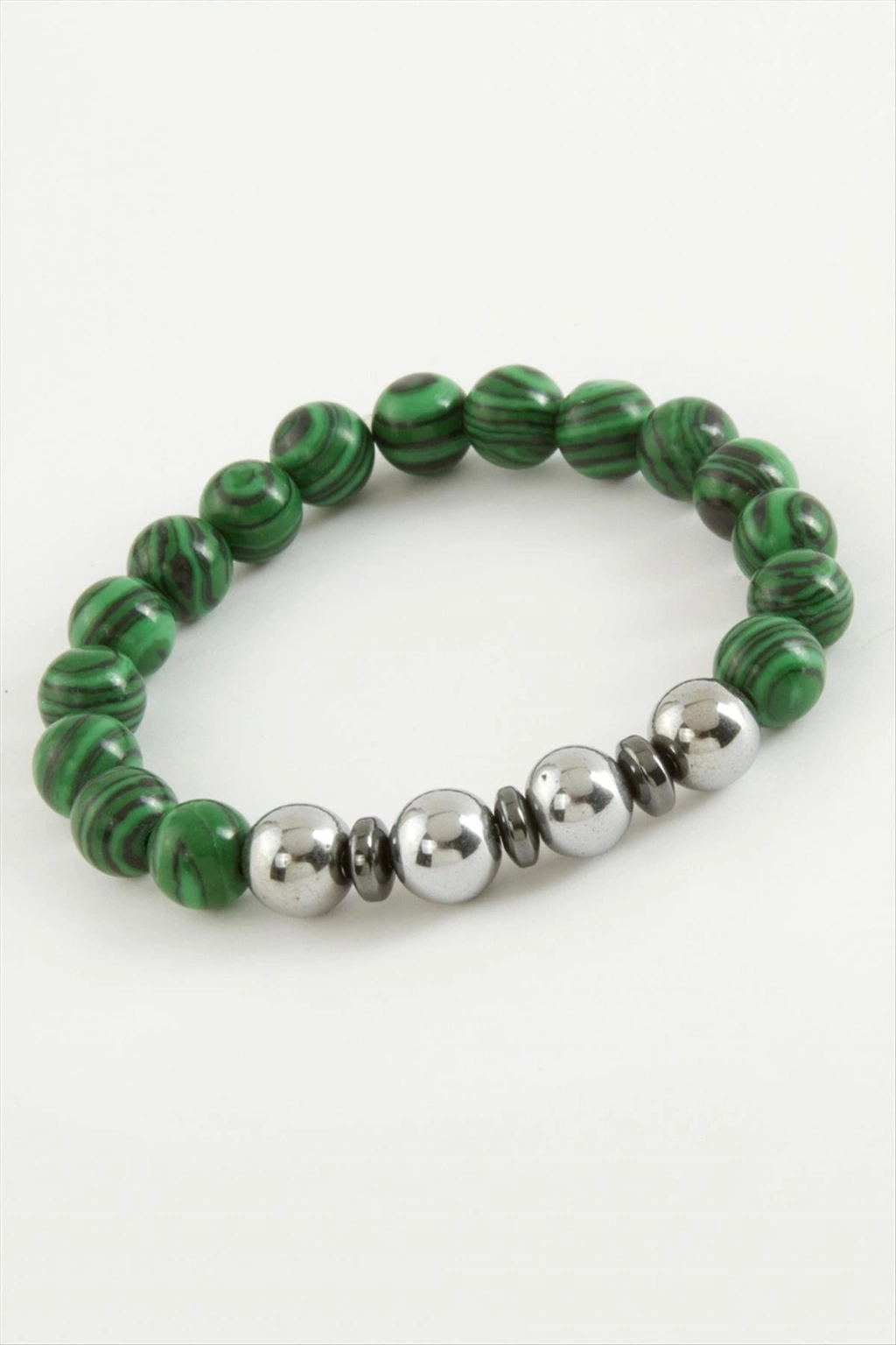 Bileklik: Ürün malzemesi malahitve hematit doğaltaşından imal edilmiştir. Misina üzerine dizilmiştir. Misina esneme özelliği bulunmaktadır.