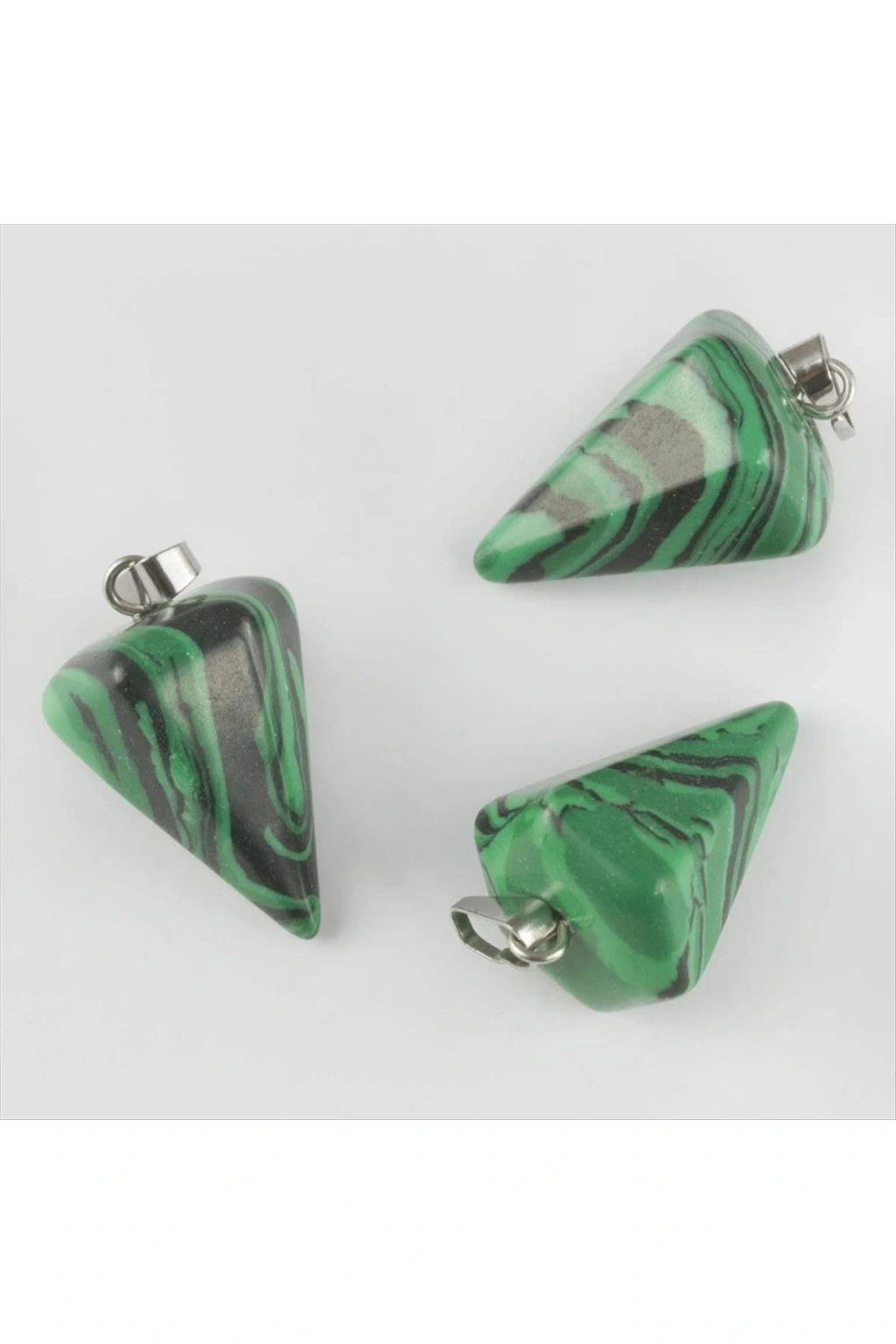 Ürün kolye ucu olarak kullanılmaktadır. Doğaltaş malahitdir. Şekil olarak üçgen biçimindedir. Üzerinde ip veya zincir geçirmek için metal kısımı bulunmaktadır. Uzunluğu yaklaşık olarak 2 cmdir. Ürün zincirsiz olarak gönderilecektir.
