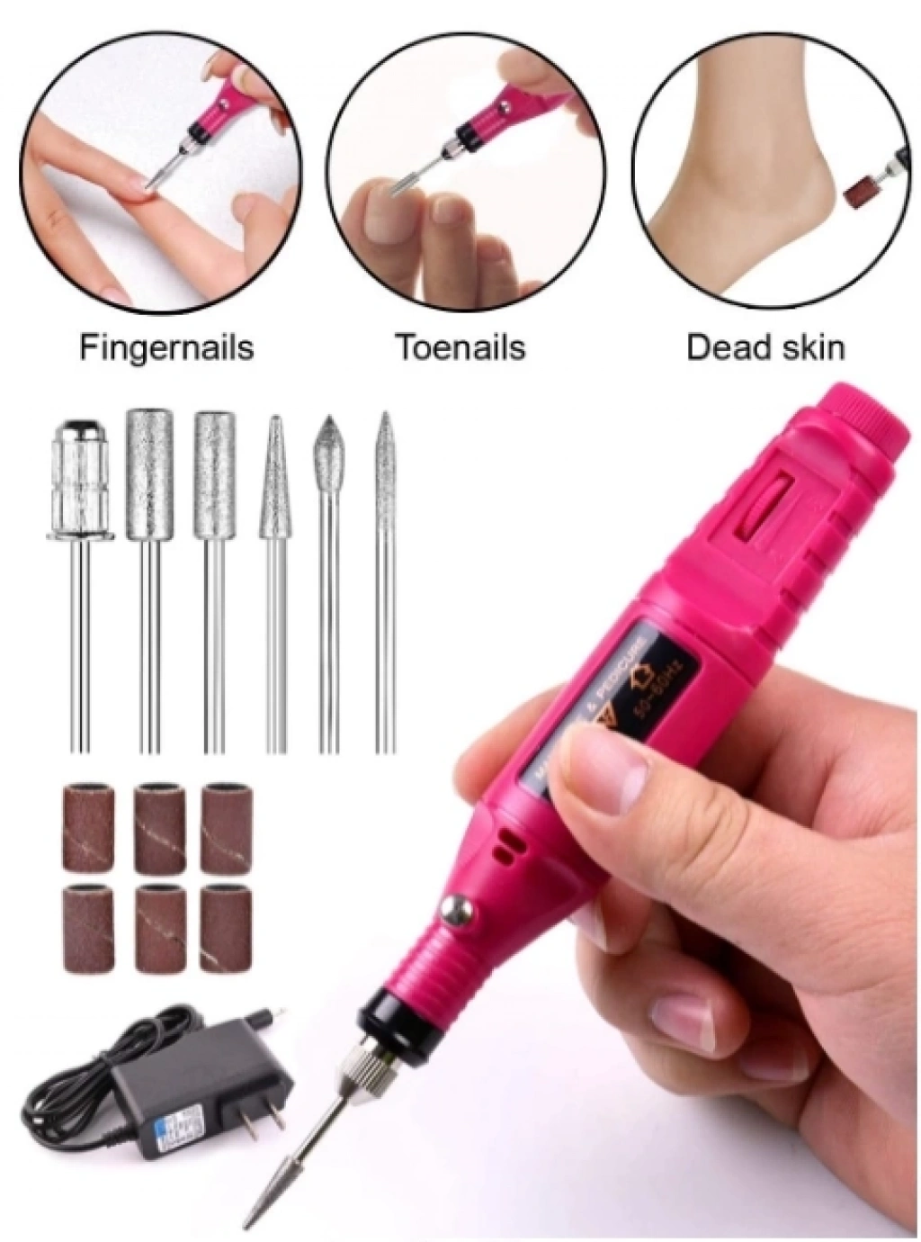 Elektrikli Manikür Pedikür Makinesi Seti 6 Adet Metal Uç 6 Adet Zımpara Priz Dönüştürücü Aparat Pakete Dahildir