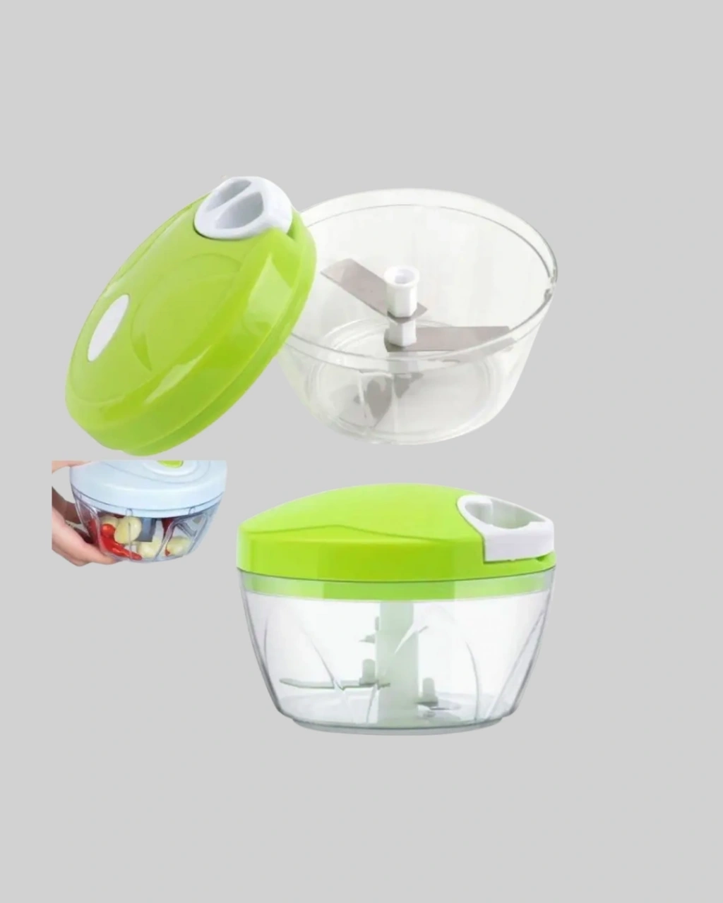 Hızlı manuel yiyecek doğrayıcı, mutfak robotlarına zahmetsiz ve pratik bir alternatif sunar. Küçük miktarlarda yiyecek doğramak için büyük ve ağır mutfak robotlarıyla uğraşmaya gerek kalmadan, saniyeler içinde sonuç almanızı sağlar. İpli çekme mekanizması sayesinde yiyecekler kısa sürede eşit şekilde parçalanır. Üç adet ultra keskin paslanmaz çelik bıçağı, soğan, sarımsak, sebze ve meyveleri hızlıca doğramaya yardımcı olur. Kompakt tasarımı sayesinde az yer kaplar ve mutfakta düzen sağlar. Günlük kullanım için ideal, pratik ve güvenli bir mutfak yardımcısıdır.