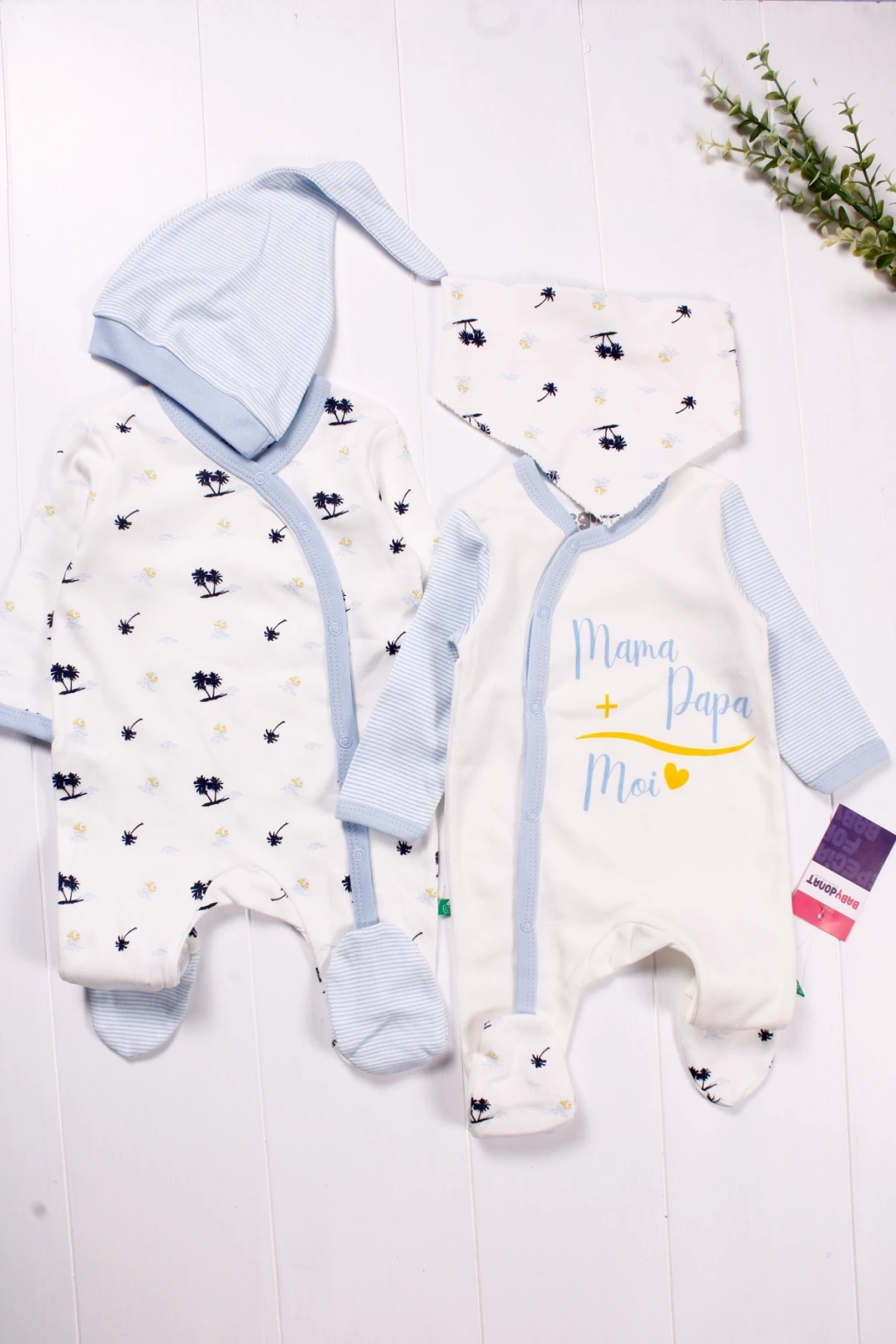 Araba Desenli Mavi 4'lü Erkek Bebek Tulumu