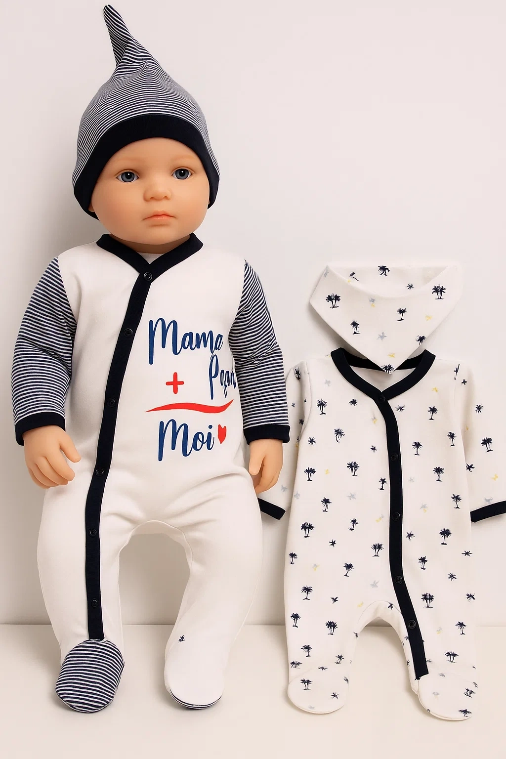 Marin Kravuze Desenli Erkek Bebek 4'lü Tulum Seti