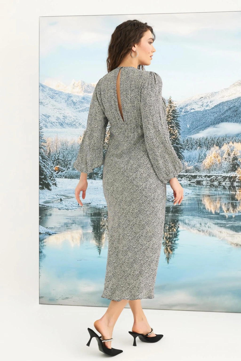 MARSiLYAN- Desenli Uzun Kollu Elbise