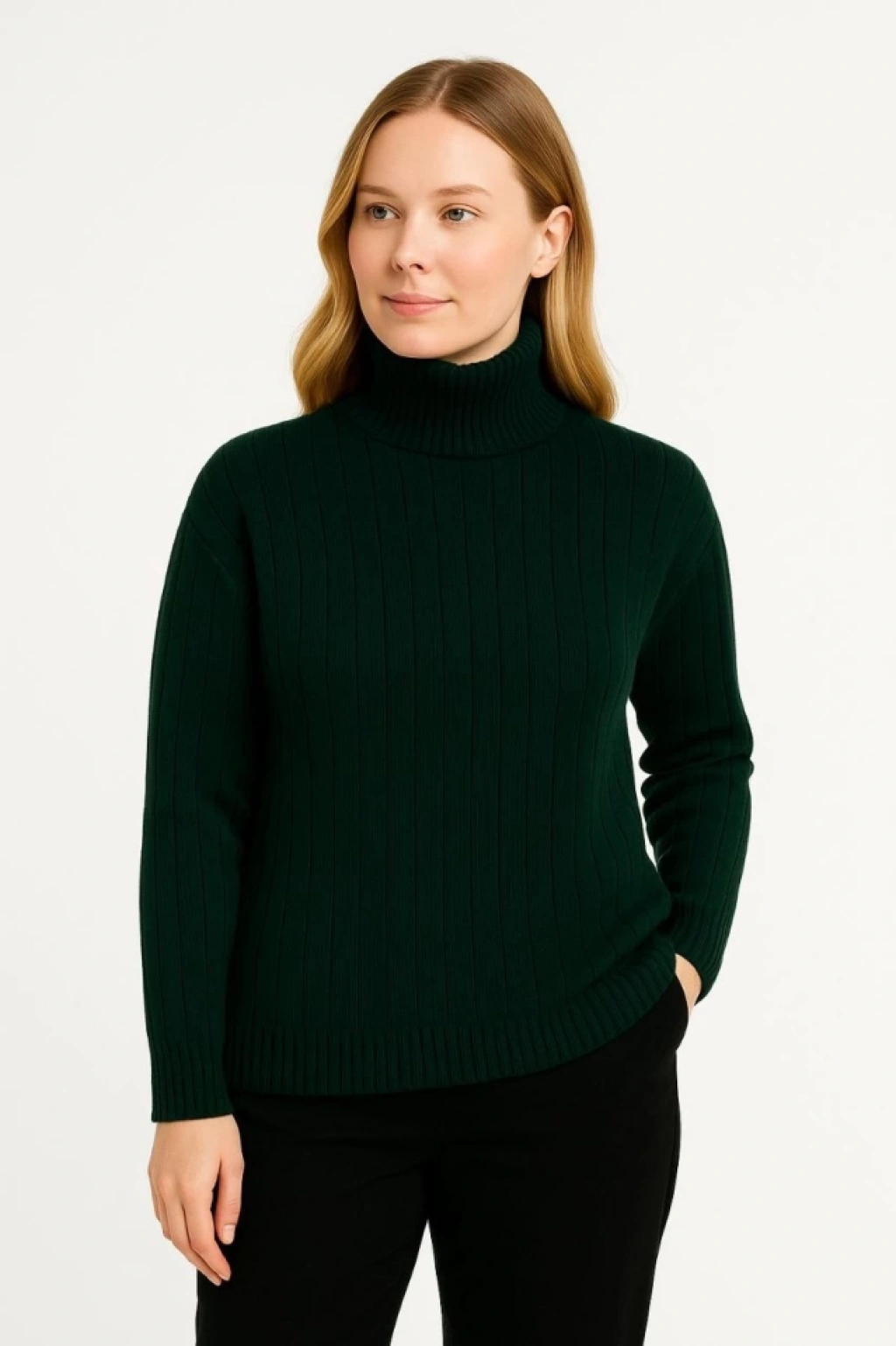 Balıkcı Yaka Bağazlı Triko Kazak Pamuklu Kalın Fitilli Dokuma - Haki