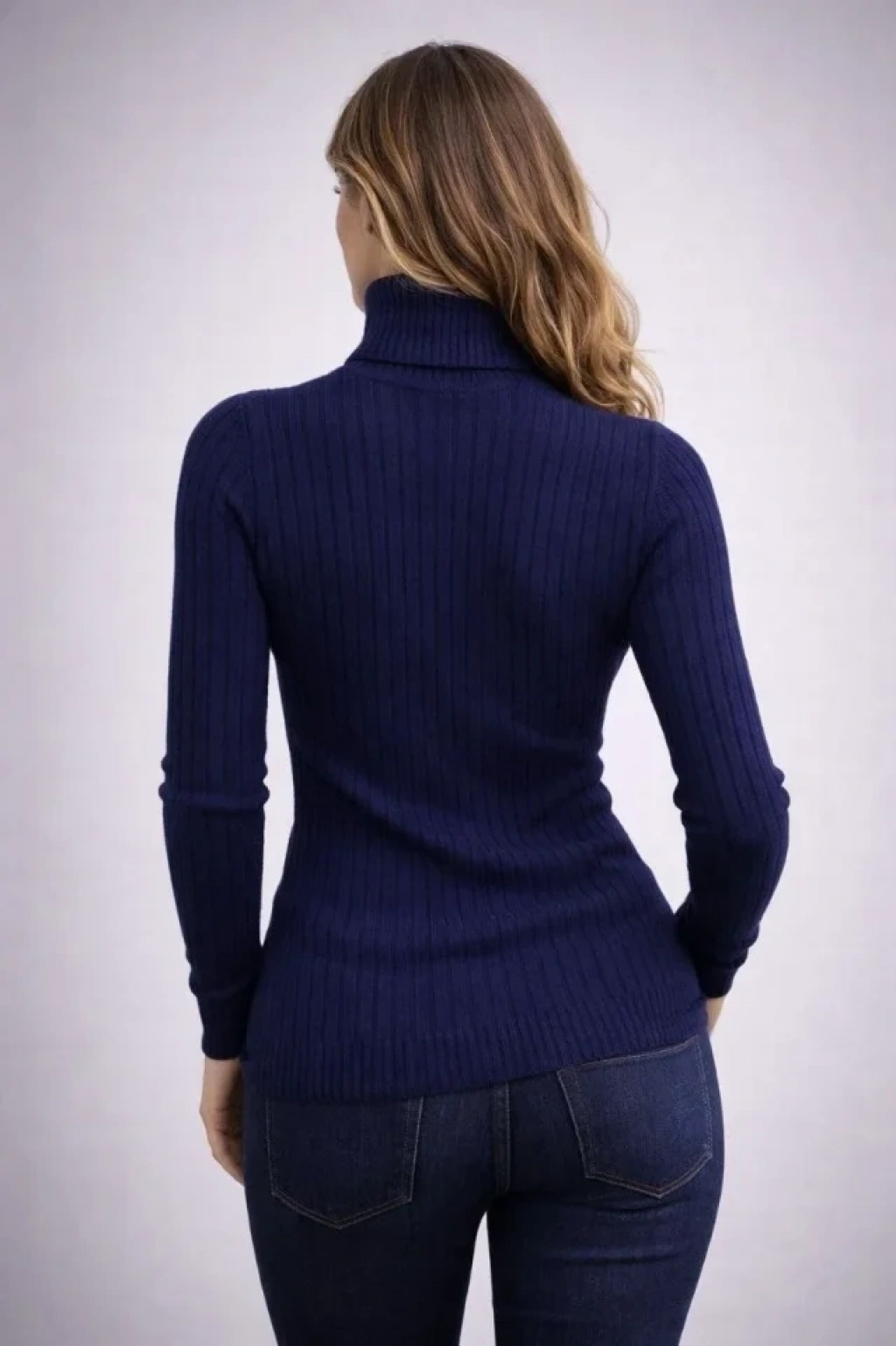 MARSiLYAN- Balıkcı Yaka Bağazlı Triko Kazak Pamuklu Kalın Fitilli Dokuma - Lacivert