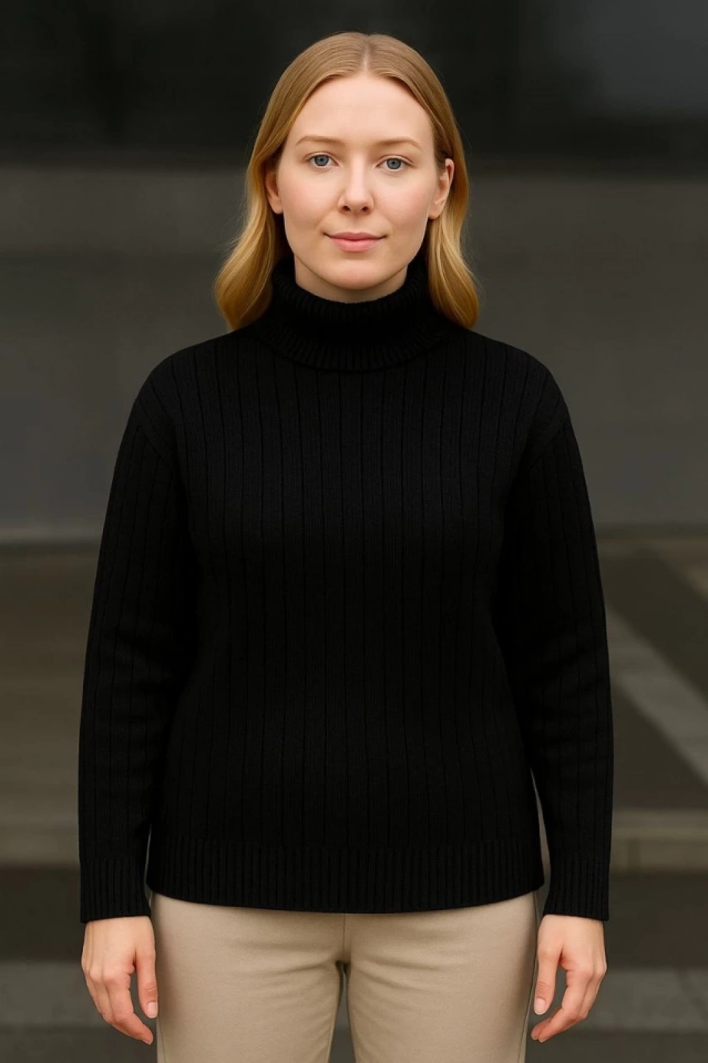 Balıkcı Yaka Bağazlı Triko Kazak Pamuklu Kalın Fitilli Dokuma - Siyah