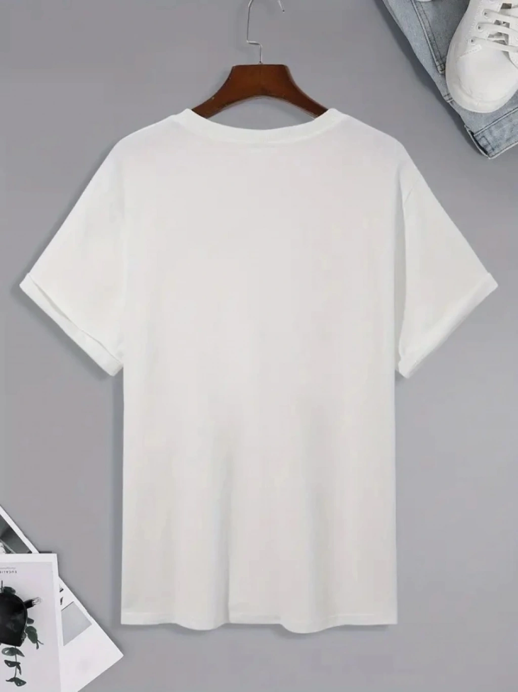 Baskılı Oversize Bisiklet Yaka T-shirt - Beyaz