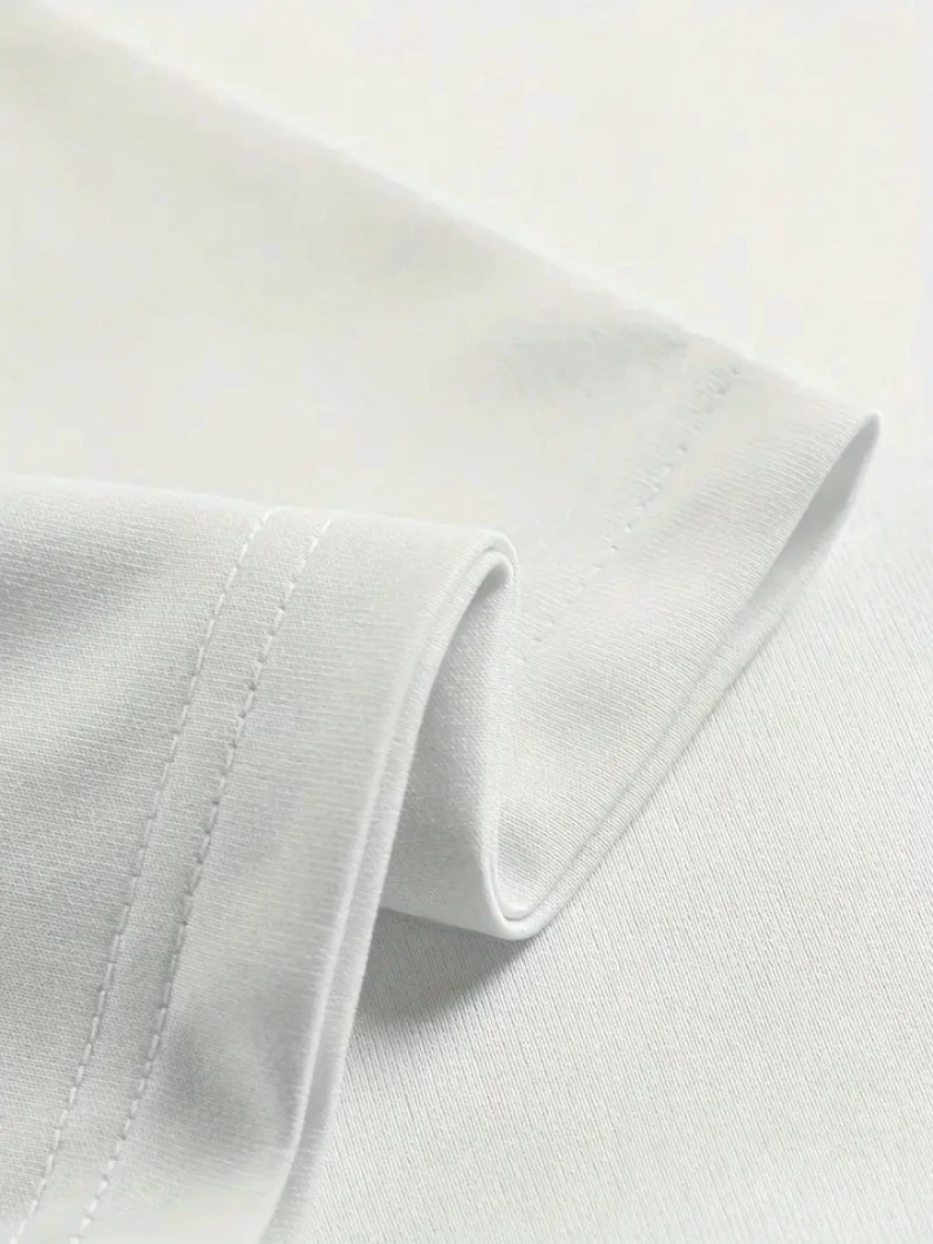 Baskılı Oversize Bisiklet Yaka T-shirt - Beyaz