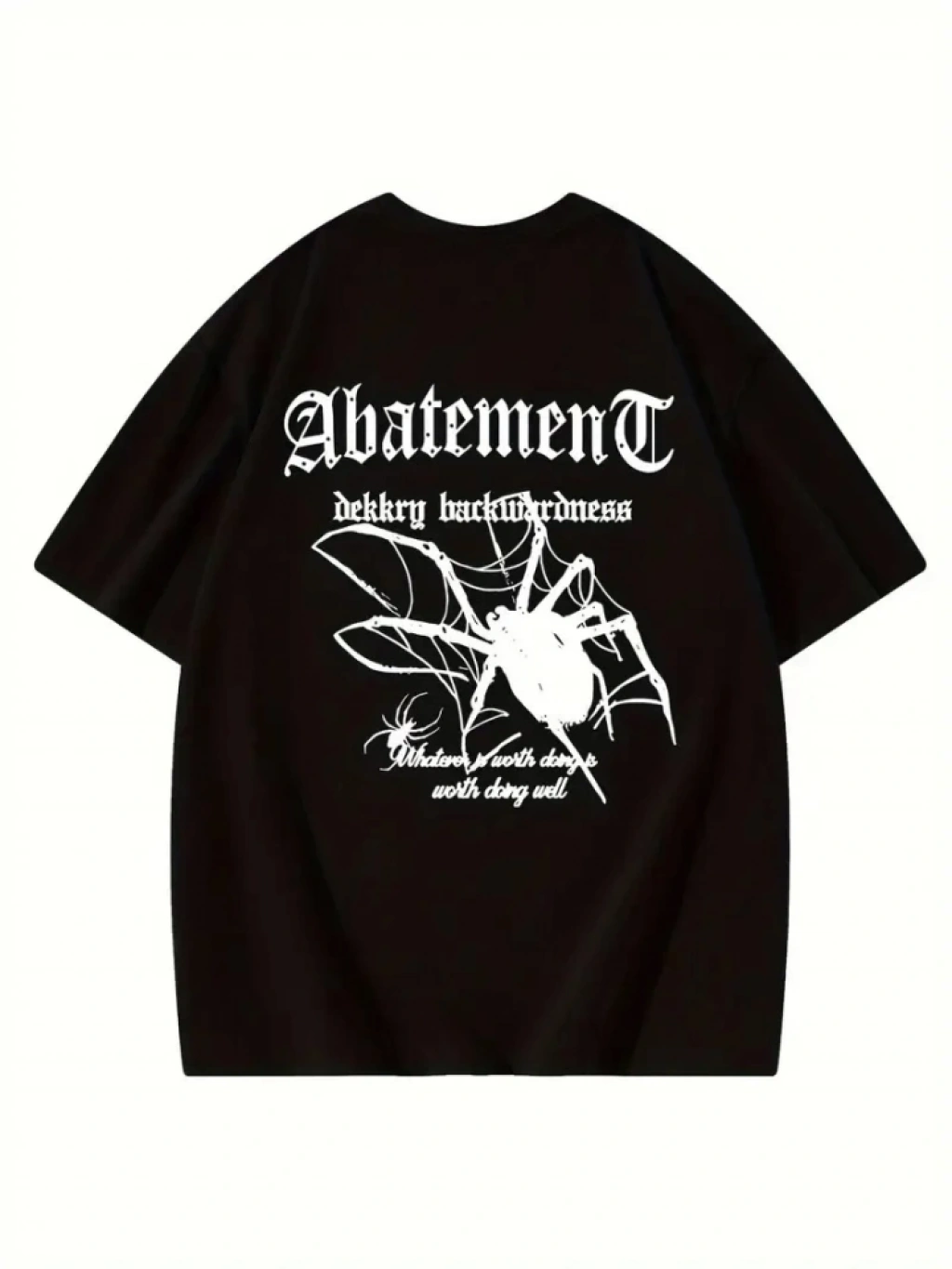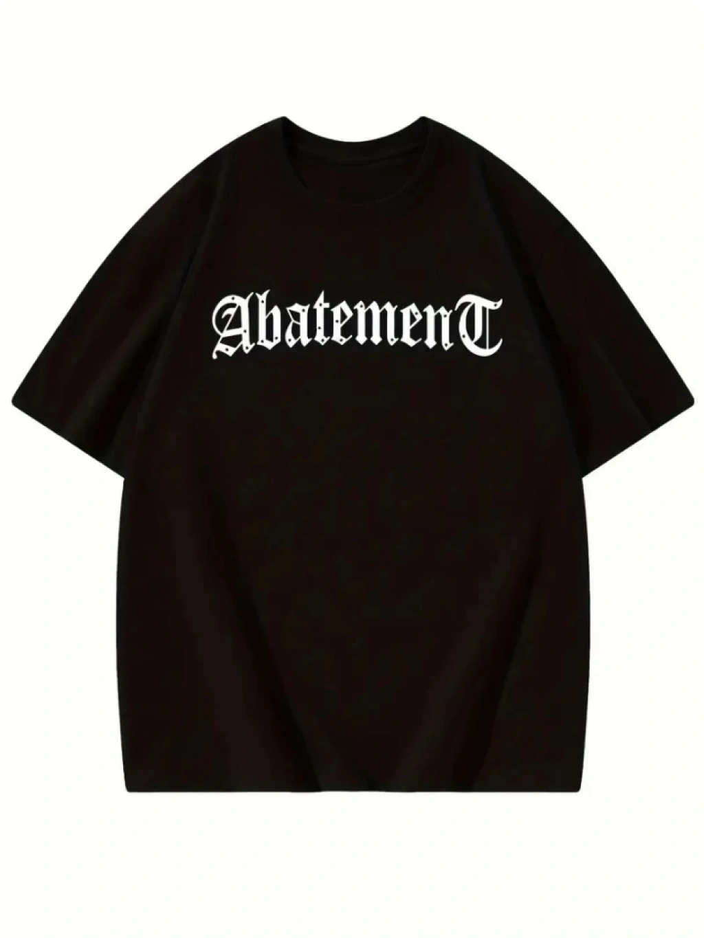 Baskılı Oversize Bisiklet Yaka T-shirt - Siyah