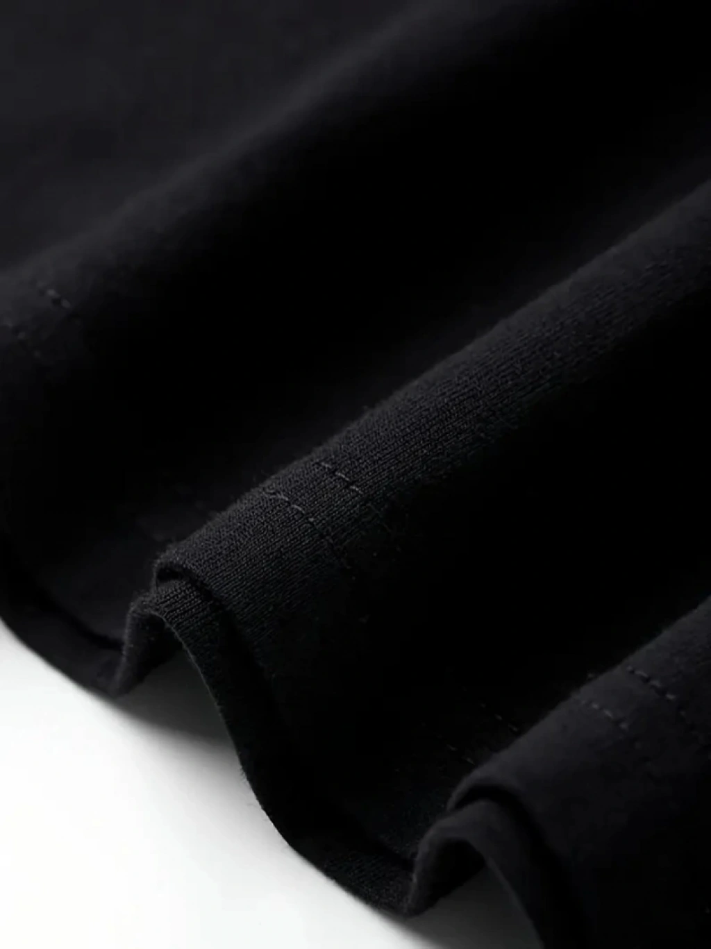 Baskılı Oversize Bisiklet Yaka T-shirt - Siyah