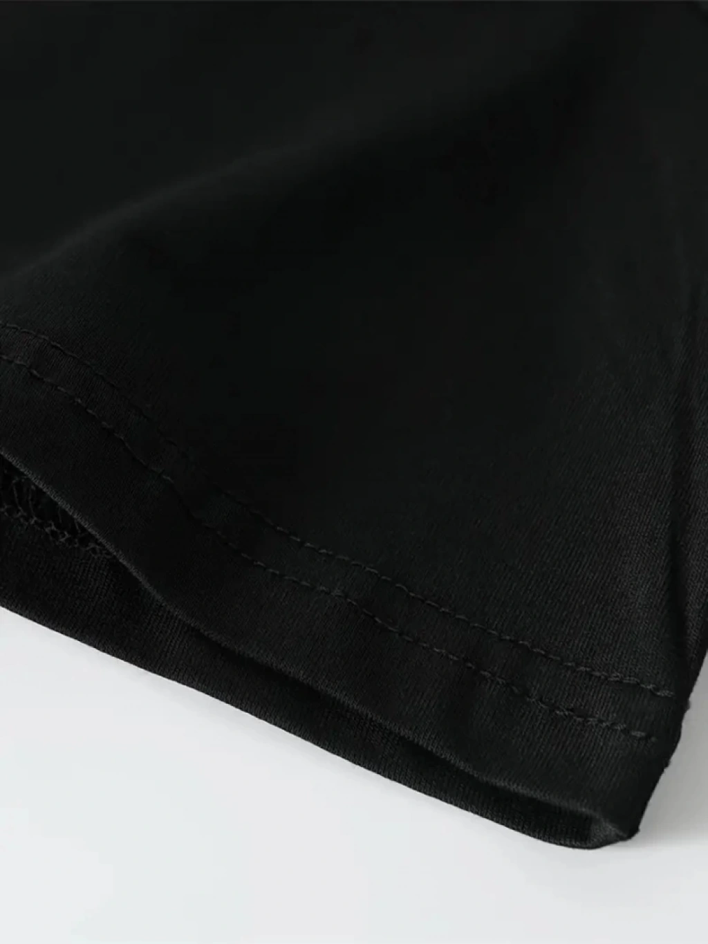 Baskılı Oversize Bisiklet Yaka T-shirt - Siyah