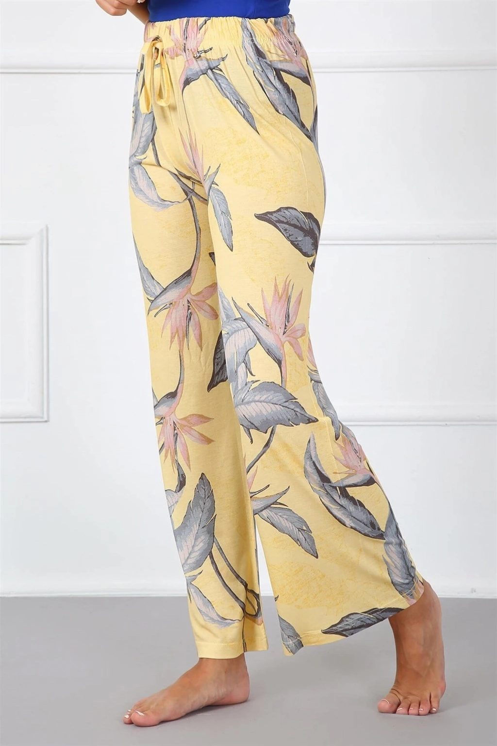 Bayan Penye Bol Paça Pantolon Sarı, tarzınızı yansıtmak istediğiniz her an size eşlik edecek şık bir seçenektir.