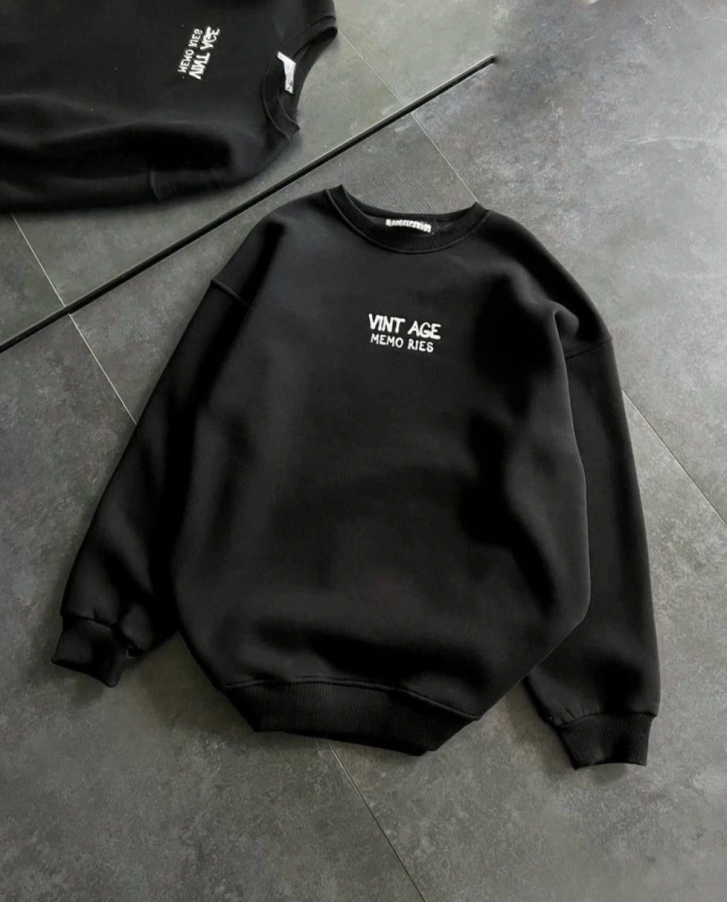Bisiklet Yaka Üç İplik Baskılı Oversize SweatShirt - Siyah